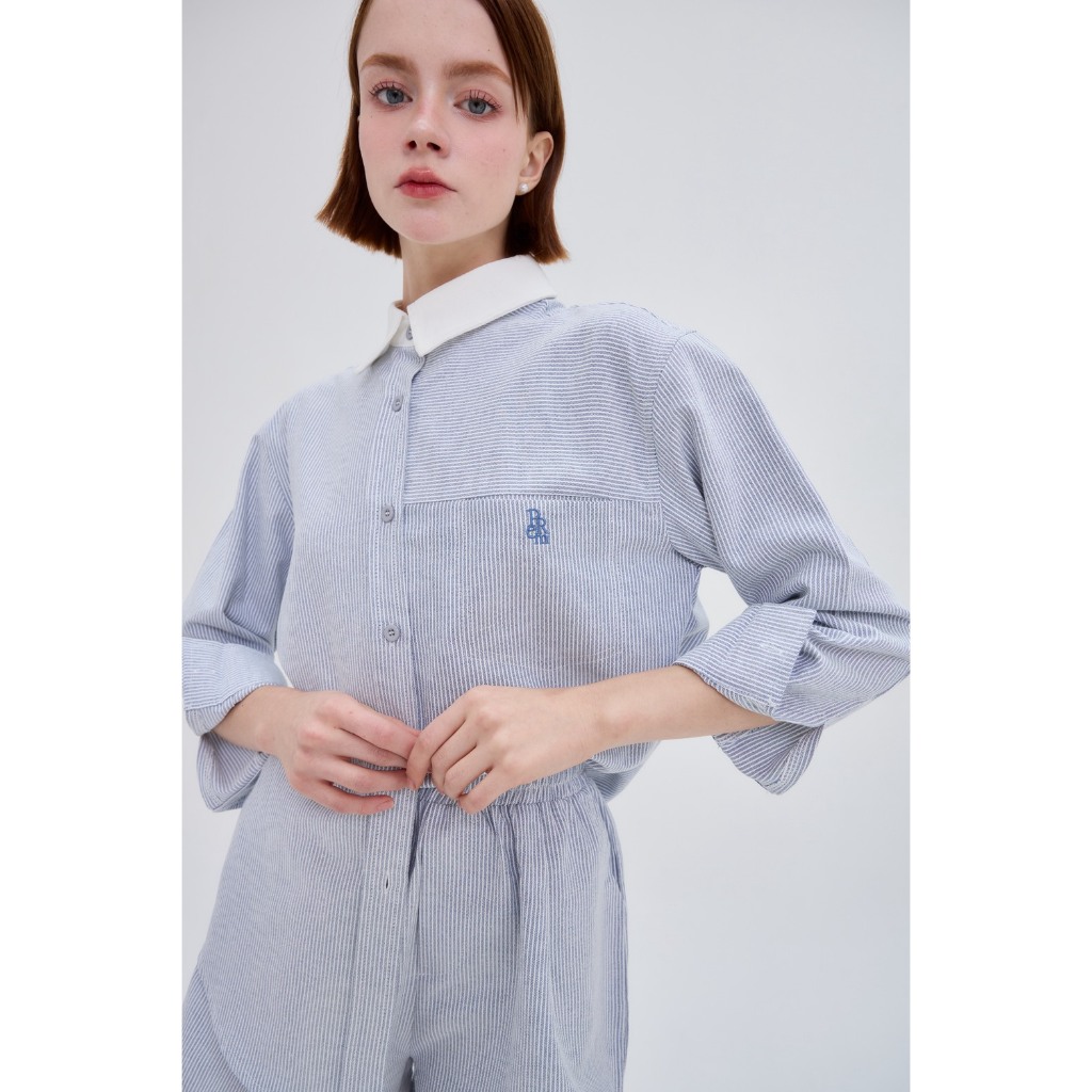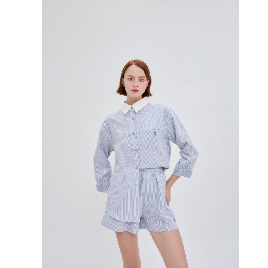PREM 〰️ชุดSet เสื้อเชิ้ต และ กางเกงขาสั้น ผ้าคอตตอน (ลายตรง) ขายเป็นSet ไม่ขายแยกชิ้นะคะ #528〰️