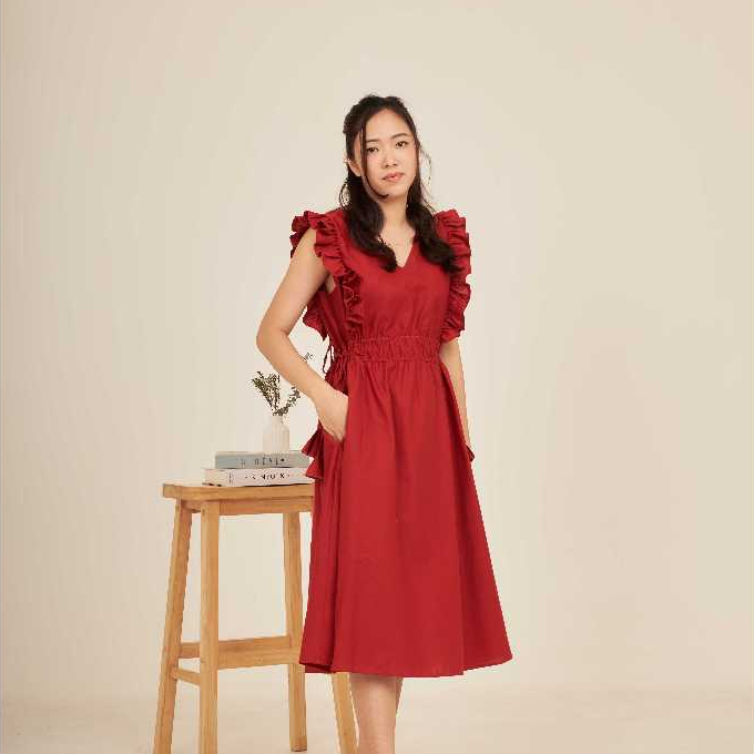 เดรสยาวแขนกุดมีระบาย รุ่น ALLURE - Something Simple