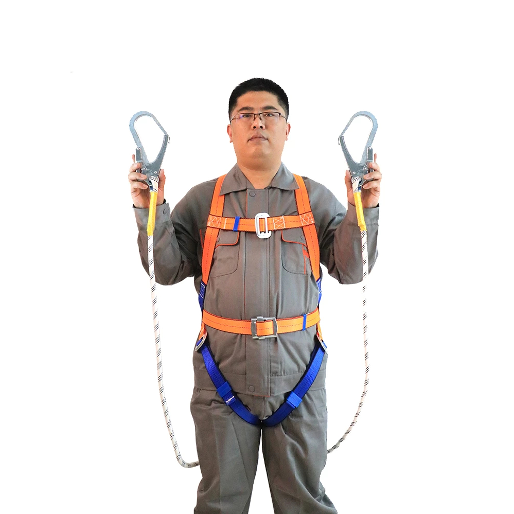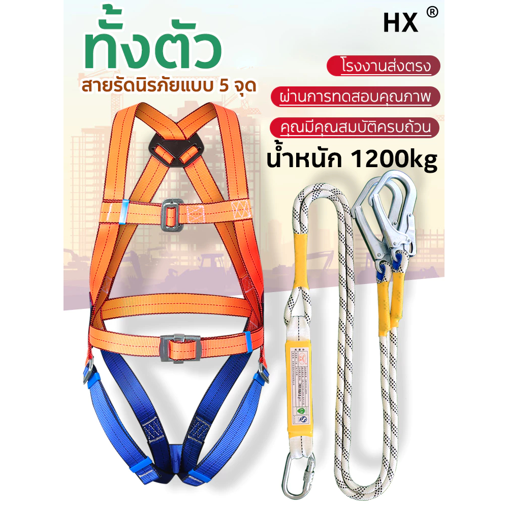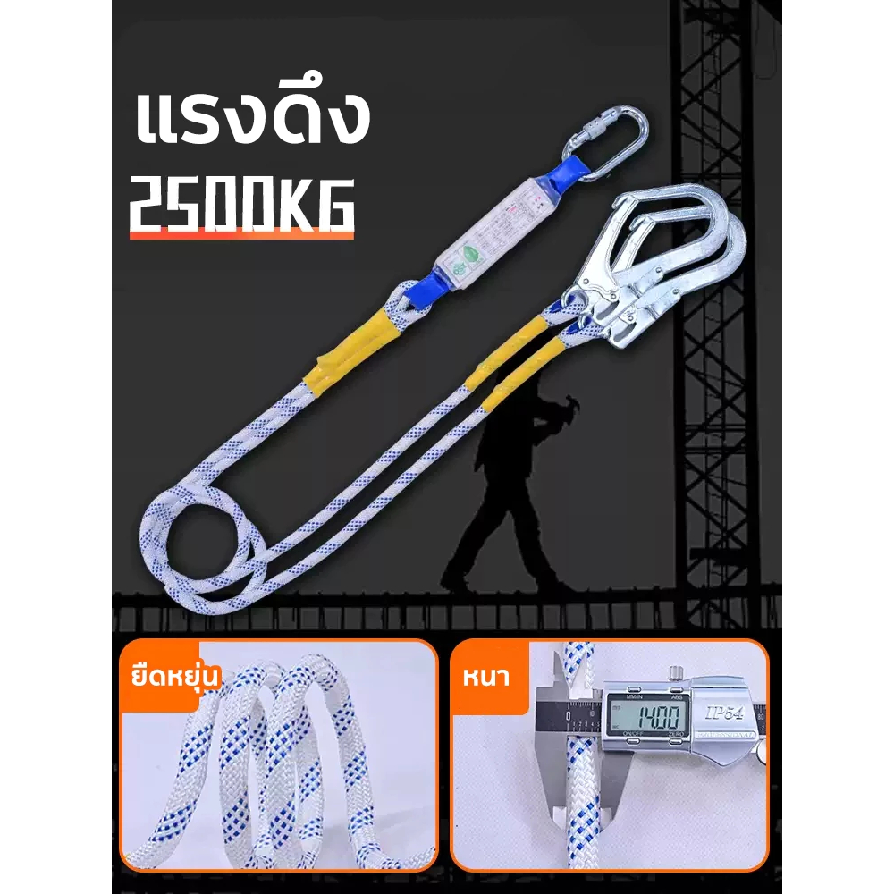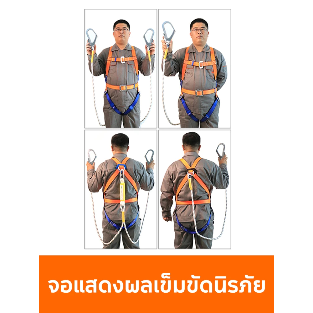 เข็มขัดเซฟตี้ น้ำหนัก 1200kg ตะขอคู่ ปลอดภัยสองชั้น พร้อมบัฟเฟอร์และอุปกรณ์ลดแรงกระแทก เชือก 2 เมตร เข็มขัดนิรภัยแบบเต็ม