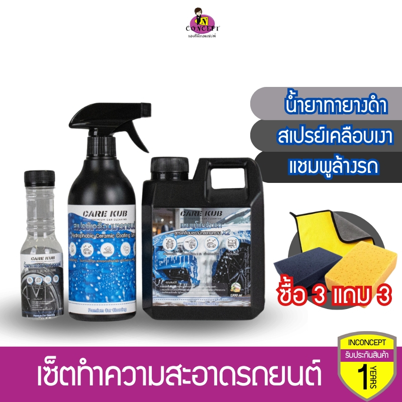 ซื้อ 3 แถม 3 CARE KUB เช็ทล้างทำความสะอาดรถ แชมพูโฟม เคลือบเงา น้ำยาทางยางดำ แถมฟรี ผ้าและฟองน้ำ