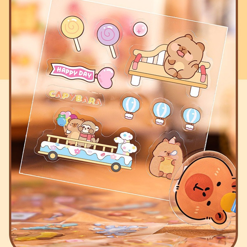 CapybaraðĨKapibala āļŠāļāļīāđāļāđāļāļāļĢāđ 100āđāļāđāļ āļāļĢāđāļāļĄāļāļĨāđāļāļ Sticker PET āļāđāļēāļĢāļąāļāļāļąāļāļāđāļģ āļāļāđāļāđāļ āđāļāļāļēāļĢāļĩāđ āļŠāļāļīāđāļāđāļāļāļĢāđāđāļāļāļąāļ āļĨāļēāļĒāļāđāļēāļĢāļąāļ