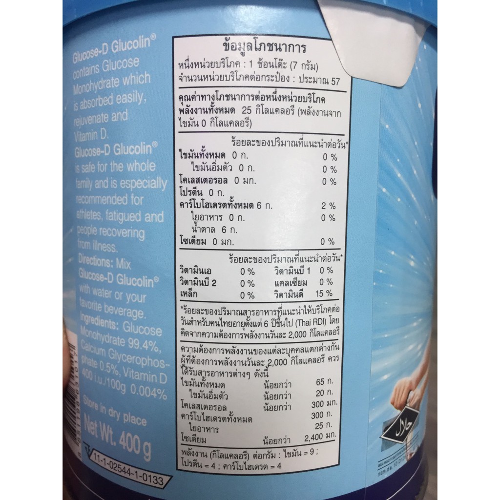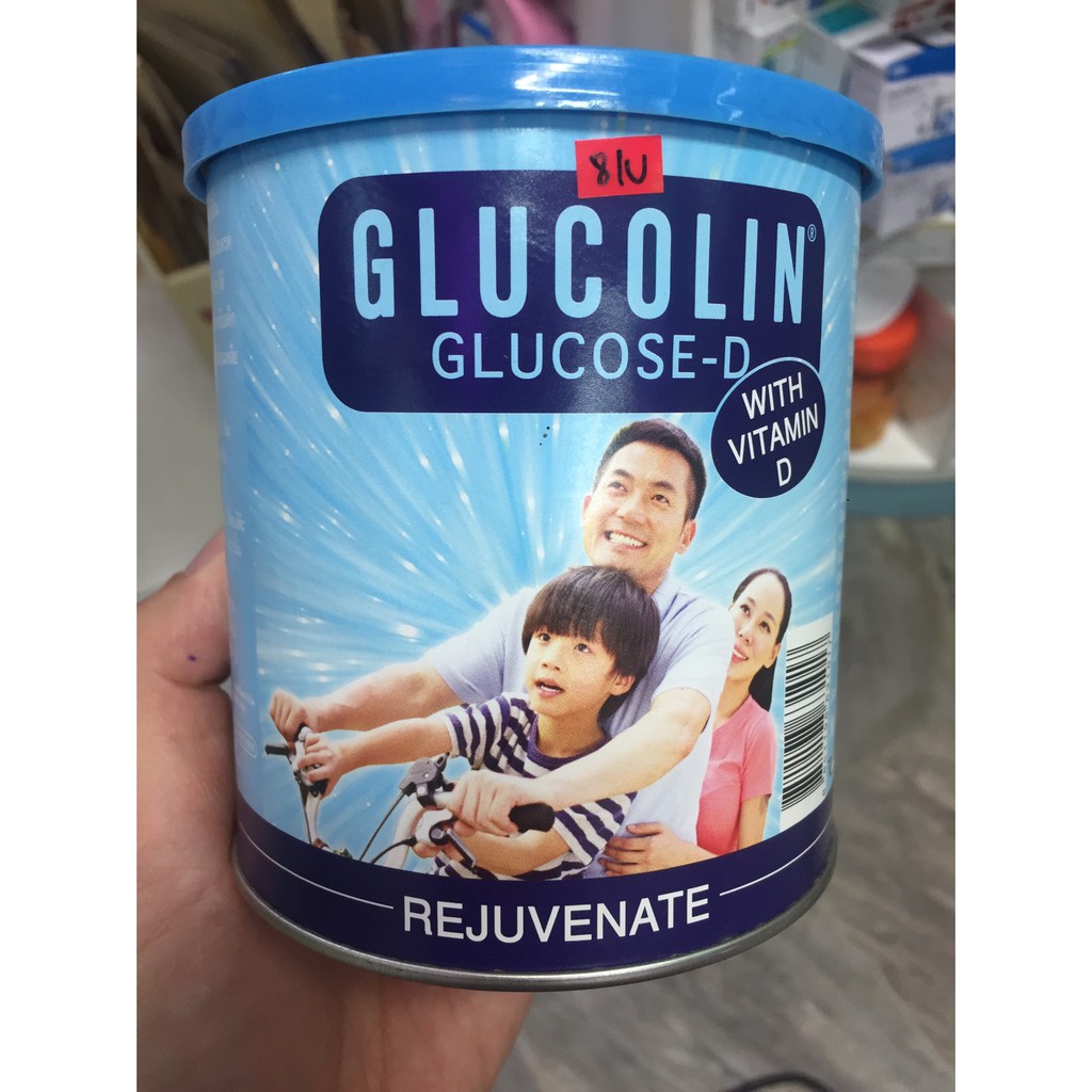 ( 3 กระป๋อง ) Glucolin Glucose-D With Viatamin D 400g กลูโคลิน กลูโคส-ดี ผสม วิตามินดี ให้ความสดชื่น 400 กรัม ฉลากไทย