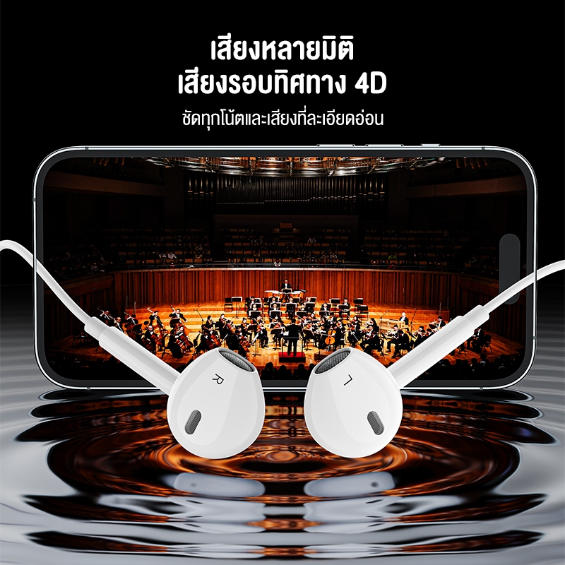 BASIKE หูฟัง ไม่ต้องเชื่อมบลูทูธ หูฟังสาย หูฟังอินเอียร์ Earphone ของแท้ ไม่มี Bluetooth ไม่มีความล่าช้า