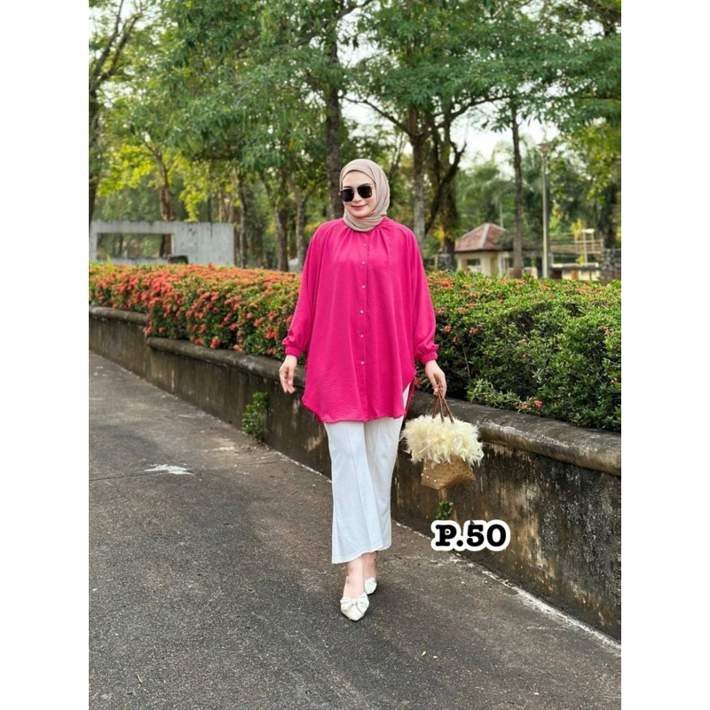 เสื้อผ้าสลาฟผู้หญิง เสื้อทรงว้าวข้างกระดุมหน้าคอจีน แขนยาวข้อมือจั้มยืด