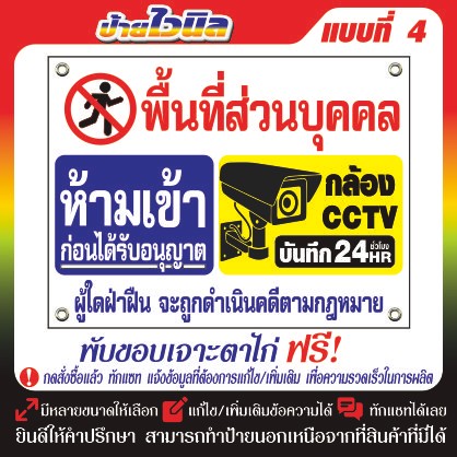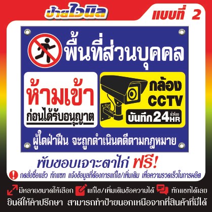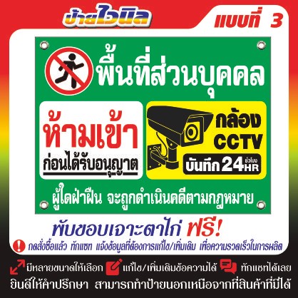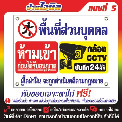 ป้ายไวนิล ป้ายห้ามเข้า (V24) ป้ายพื้นที่ส่วนบุคคลห้ามเข้า กล้อง CCTV