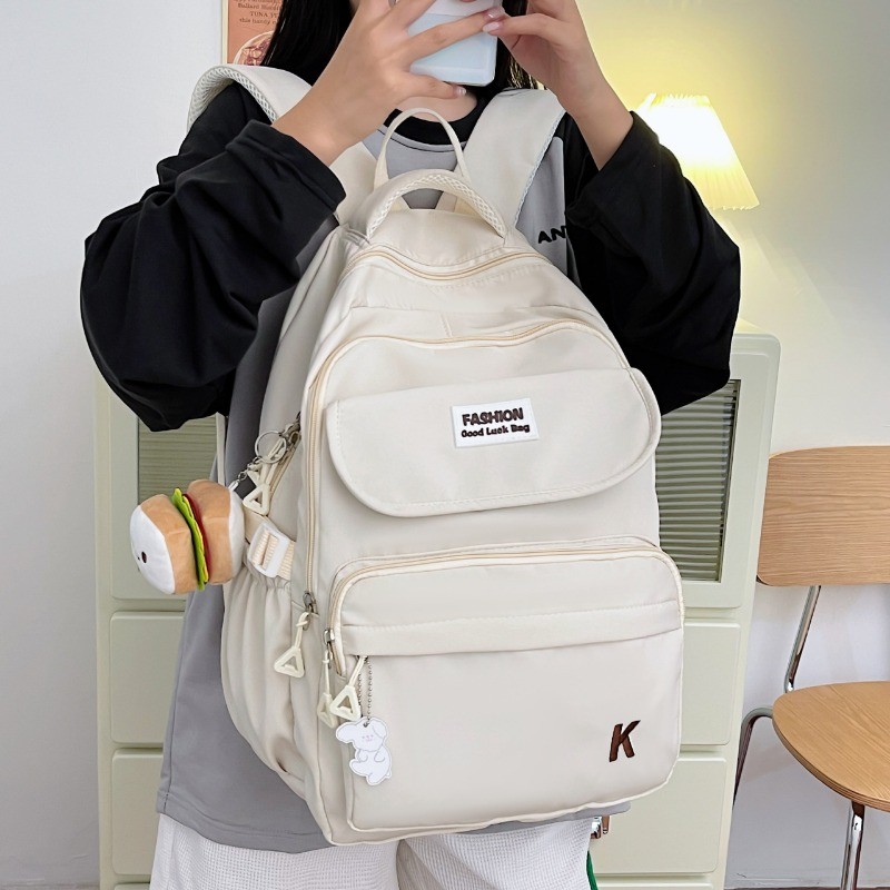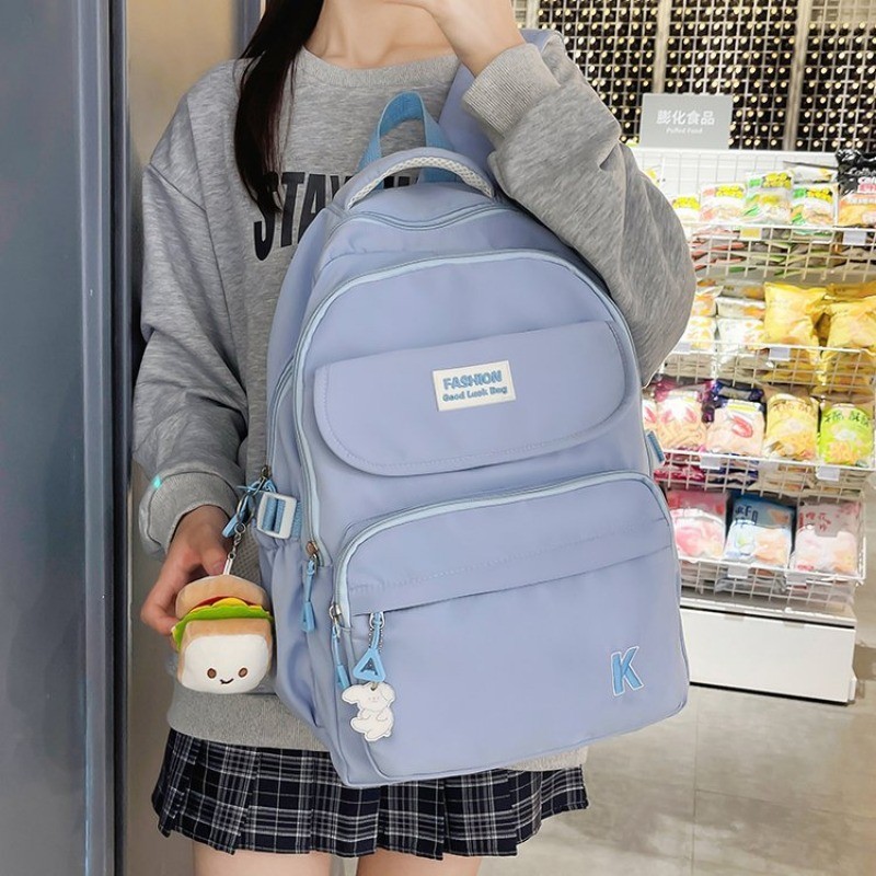 แฟชั่น ใหม่ความจุขนาดใหญ่หลายช่องน้ําหนักเบานักเรียนกระเป๋าเป้สะพายหลังสีทึบสบายๆอเนกประสงค์ การท่องเที่ยว