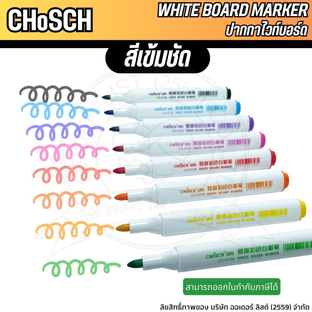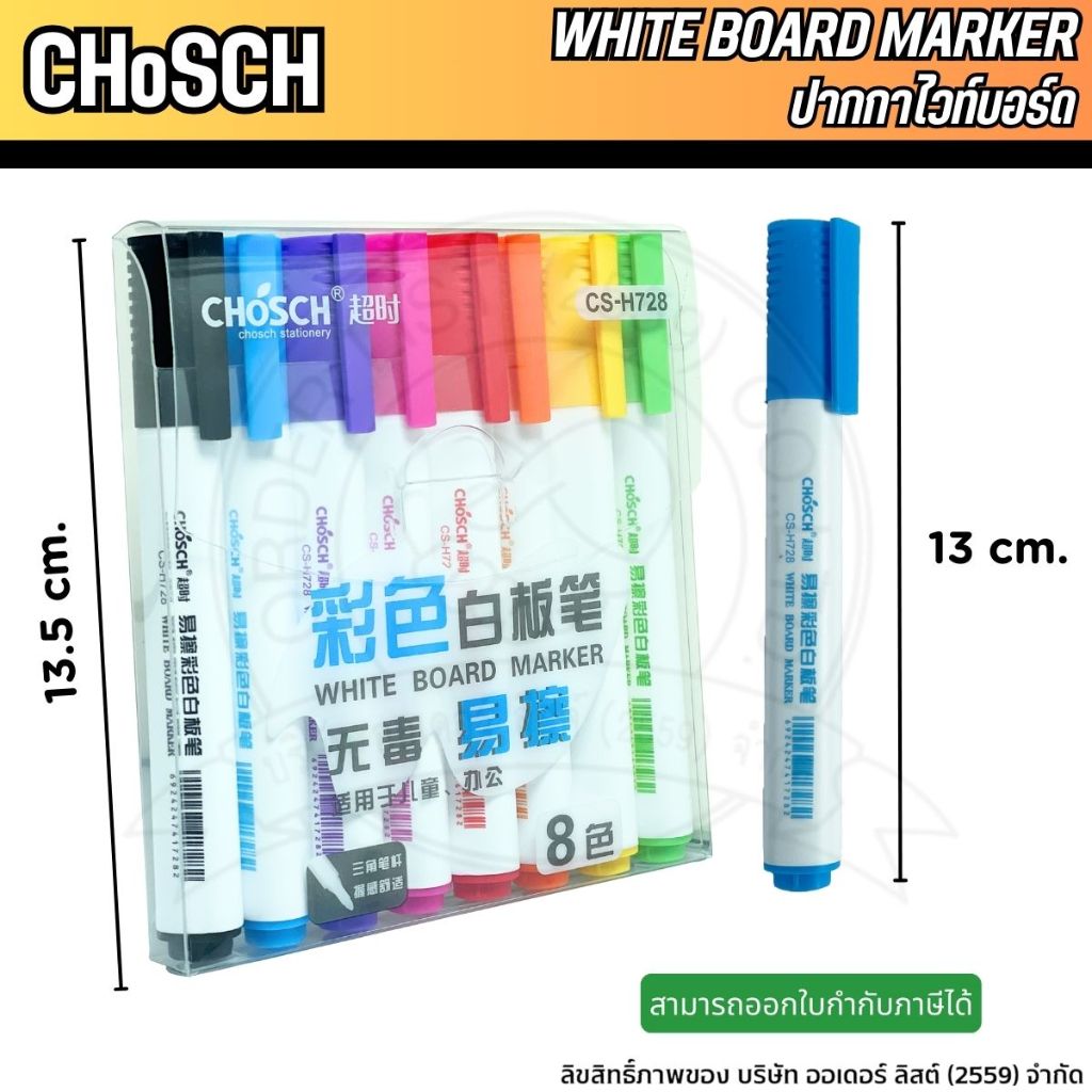 [Official Store] CHoSCH ชุดปากกาไวท์บอร์ด 8 สี รุ่น CS-H728 - White Board Marker ปากกาปลอดสารพิษ สีเข้ม คมชัด