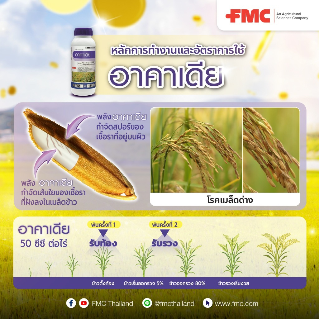 อาคาเดีย (ทีบูโคนาโซล+อะซ็อกซีสโตรบิน) 500ซีซี ป้องกันกำจัดโรคพืช เมล็ดด่าง เชื้อรา นาข้าว ผักผลไม้