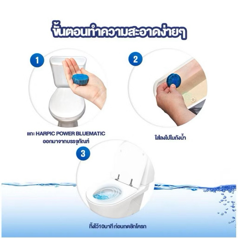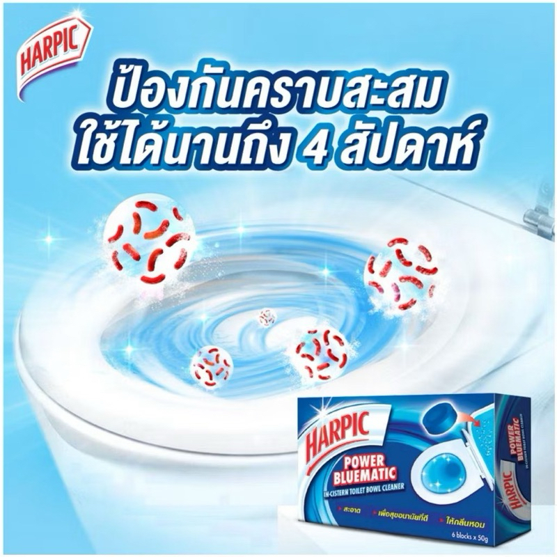 [ยกกล่อง 6 ก้อน]ทำความสะอาดชักโครก โถสุขภัณฑ์ แบบก้อนกลม สีน้ำเงิน ฮาร์ปิค พาวเวอร์ บลูเมติก