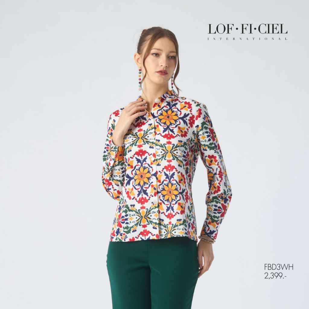 LOF-FI-CIEL Woman's shirt Mosaic เสื้อเชิ้ตผู้หญิง แขนยาว สีเขียว FBD3WH