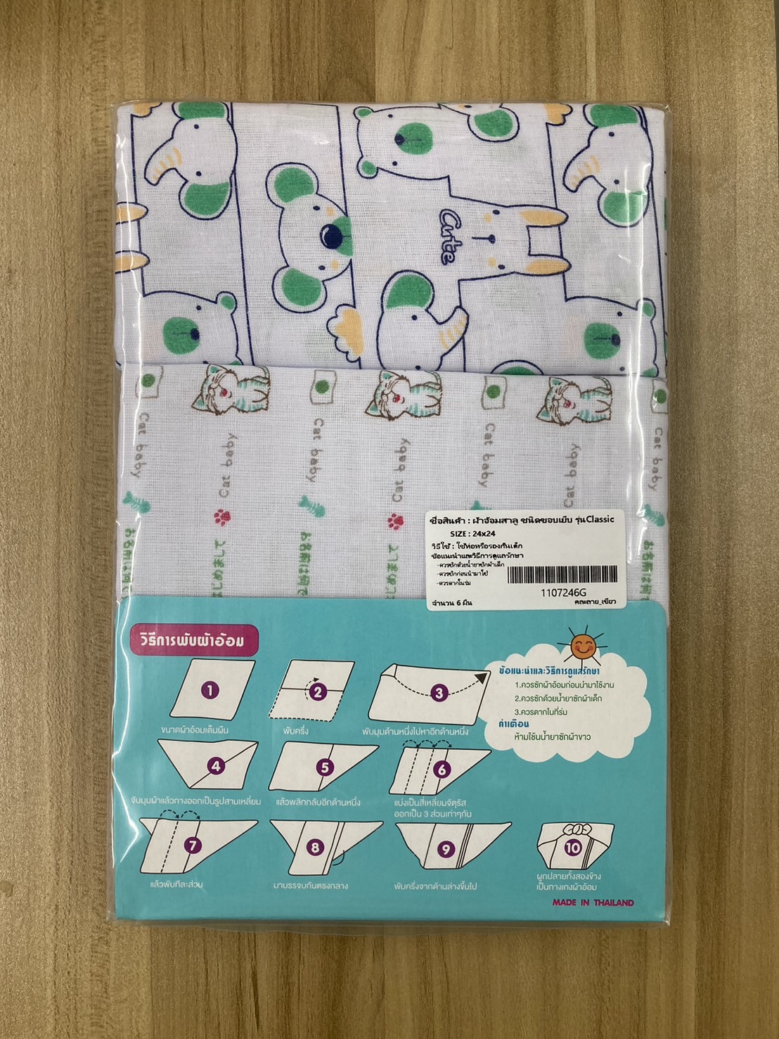 Natty Punn ผ้าอ้อมผ้าสาลู รุ่น Classic นุ่ม ซึมซับดี เย็บขอบ 6 ผืน 24x24 นิ้ว (คละลาย เขียว/ชมพู)
