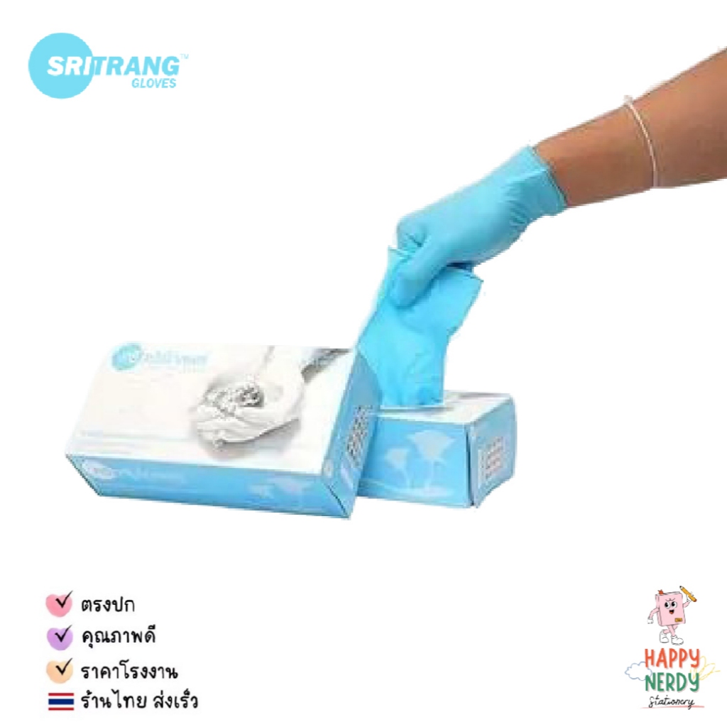 Sritrang ถุงมือไนไตรศรีตรังสีฟ้า หนา 4.8 กล่องฟ้า Size S/M/L 1 กล่อง บรรจุ 100 ชิ้น