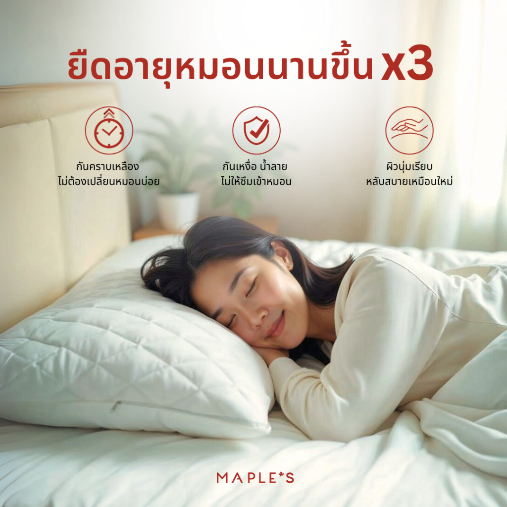MAPLE'S รองกันเปื้อนหมอน ป้องกันไรฝุ่น ช่วยดูเเลหมอนให้สะอาดเหมือนใหม่ ปลอกหมอน ถุงสวมหมอน 20x30นิ้ว