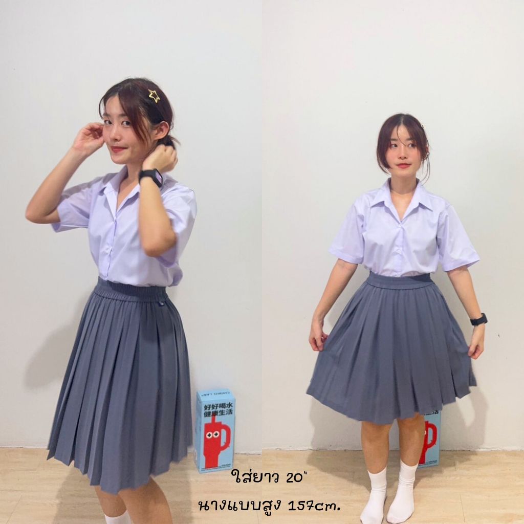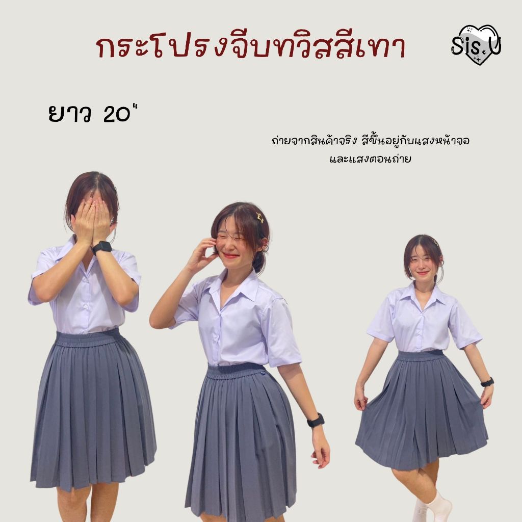 กระโปรงพลีทจีบทวิส กระโปรงจีบทวิท สีเทา พลีททวิสสีเทา ♡⍨