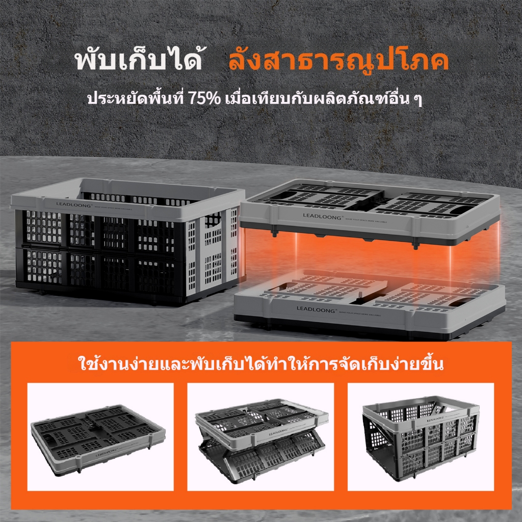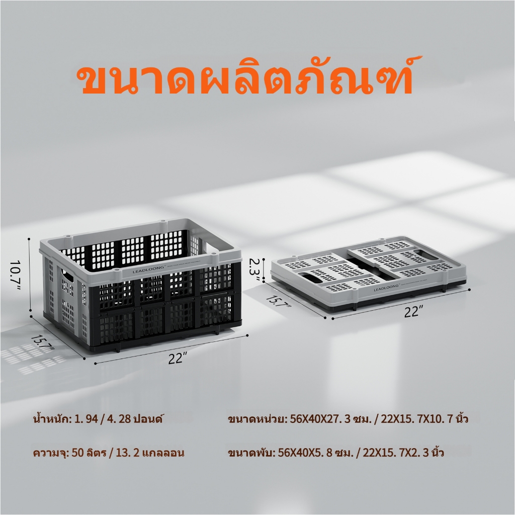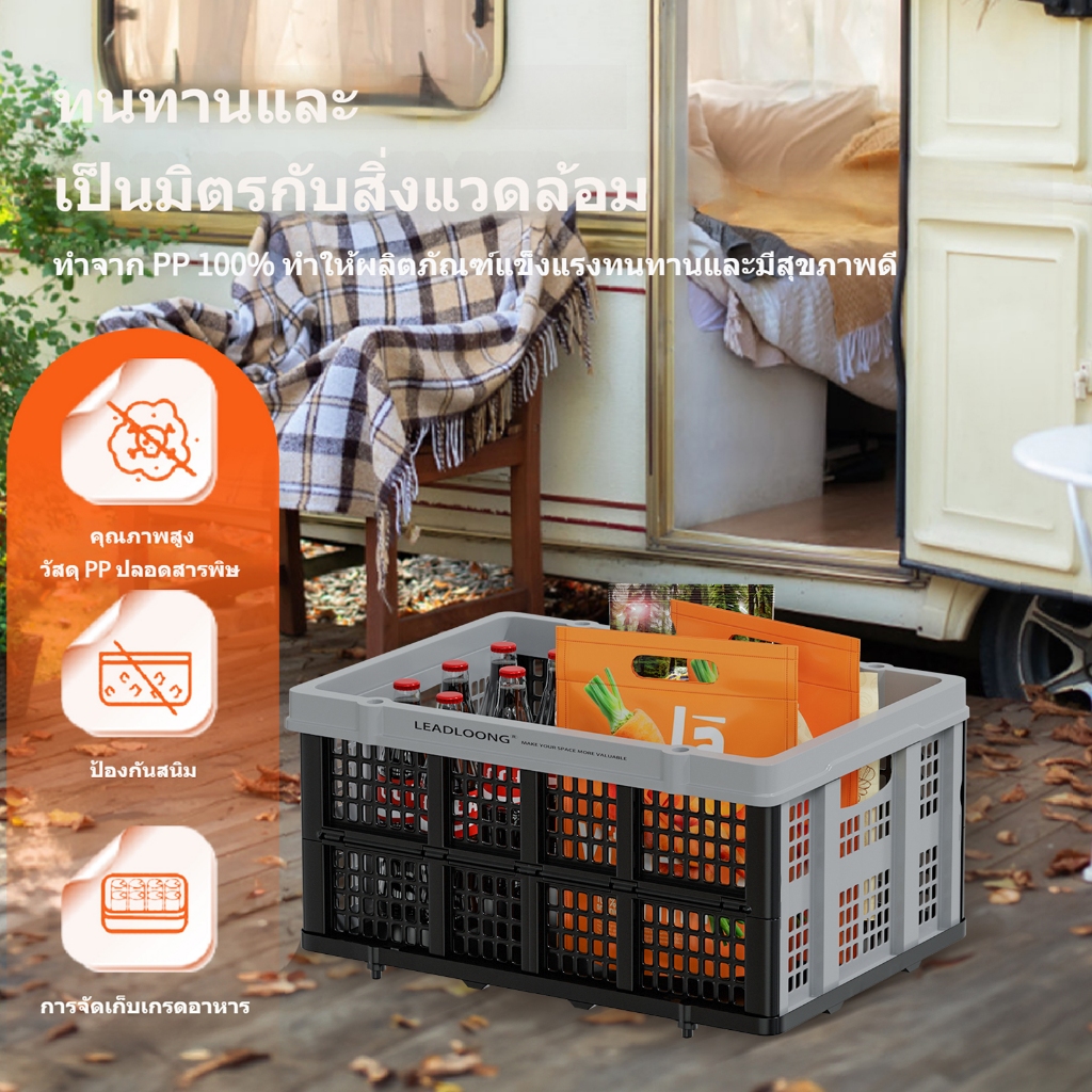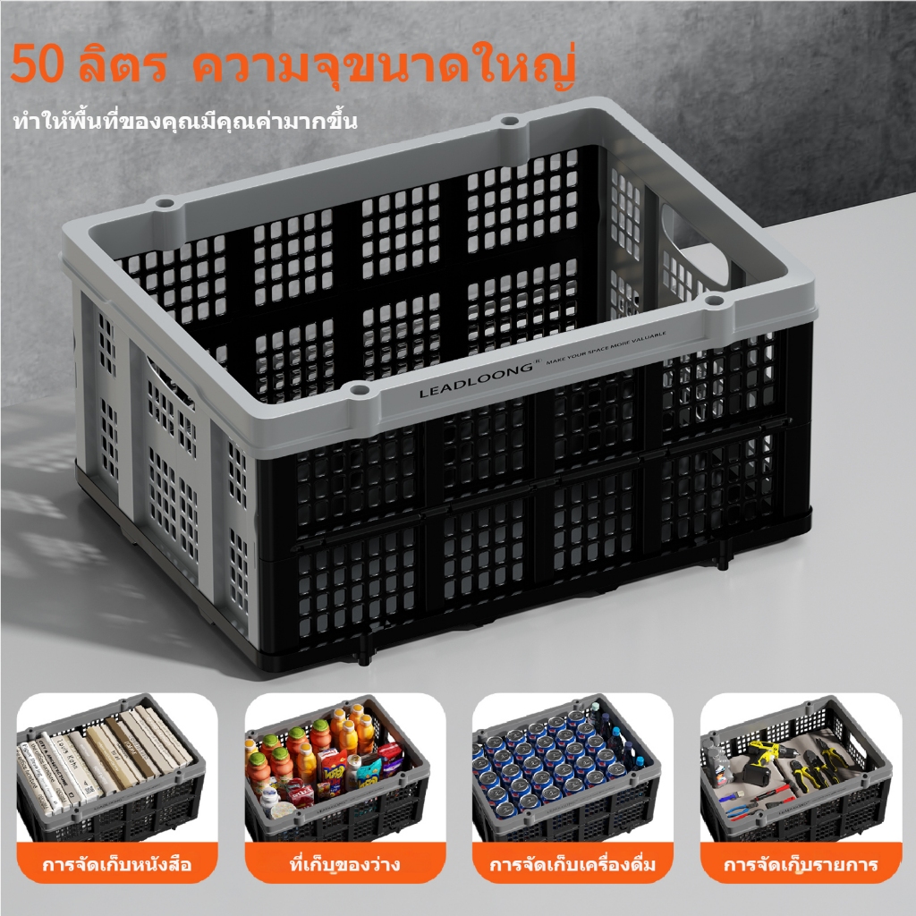 LEADLOONG ลังพับได้ 50 ลิตร 56*40*27.3 ซม. 2/4 ชิ้น ตะกร้าอเนกประสงค์ พับได้ สามารถใช้ร่วมกับรถเข็นแบบพับได้ ตะกร้าเก็บของแบบซ้อนได้พร้อมที่จับ ภาชนะเก็บของแบบพับได้สำหรับจัดระเบียบเครื่องมือ หนังสือ เครื่องดื่ม การตั้งแคมป์และการขนส่ง