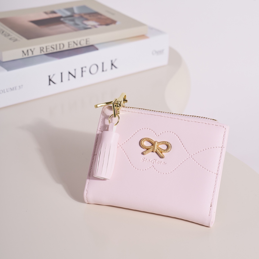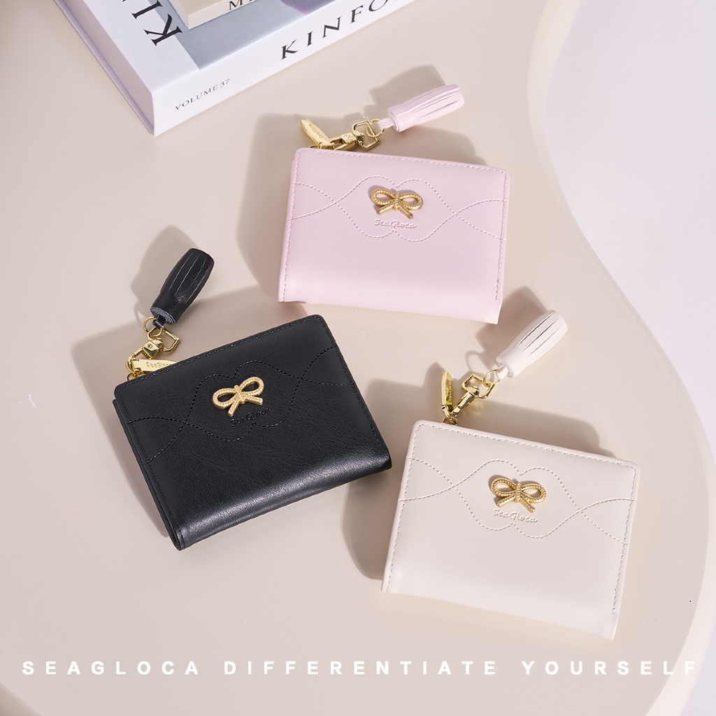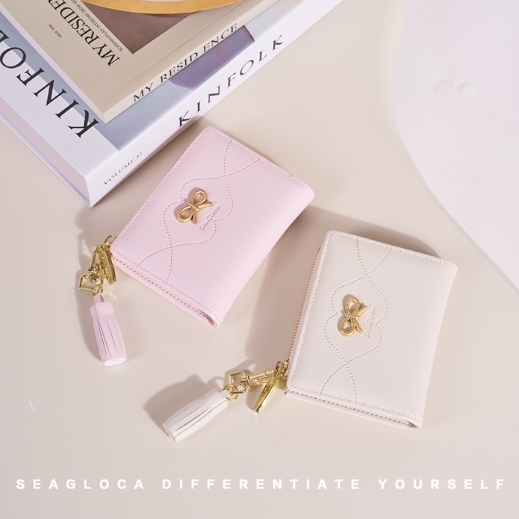 Seagloca ใหม่ขนาดเล็กสดโบว์กระเป๋าสตางค์สั้นขนาดกะทัดรัด Multi-Card กระเป๋าสตางค์สําหรับผู้หญิงไม่มี 1946