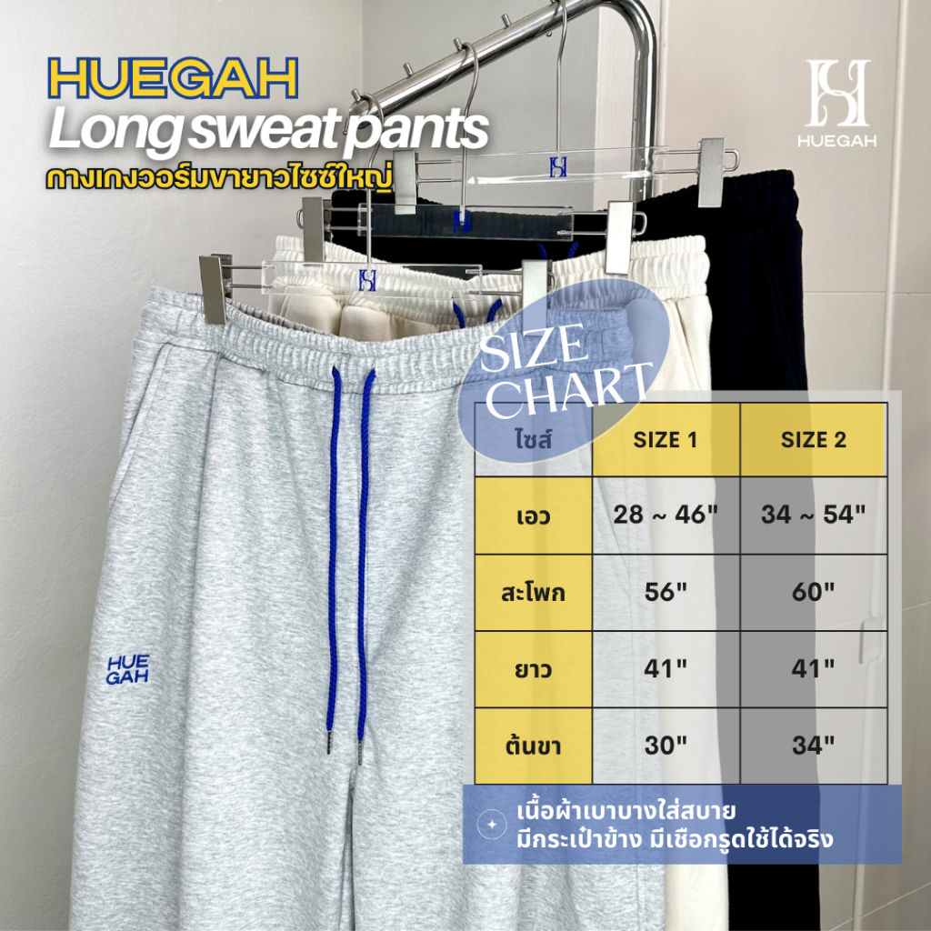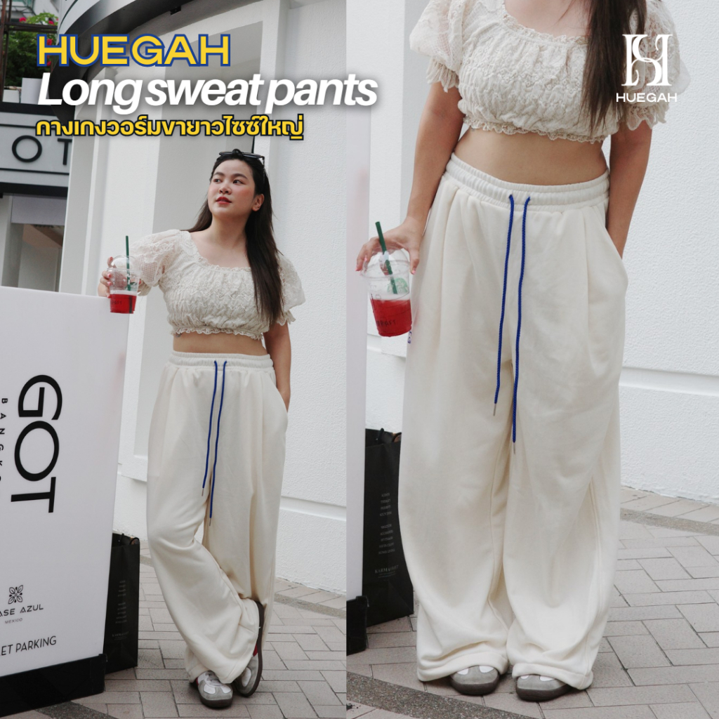 📍[พร้อมส่ง]📍HUEGAH Long sweat pants กางเกงวอร์มจีบหน้า ไซส์ใหญ่