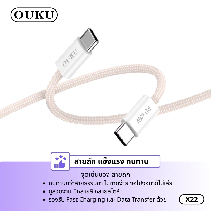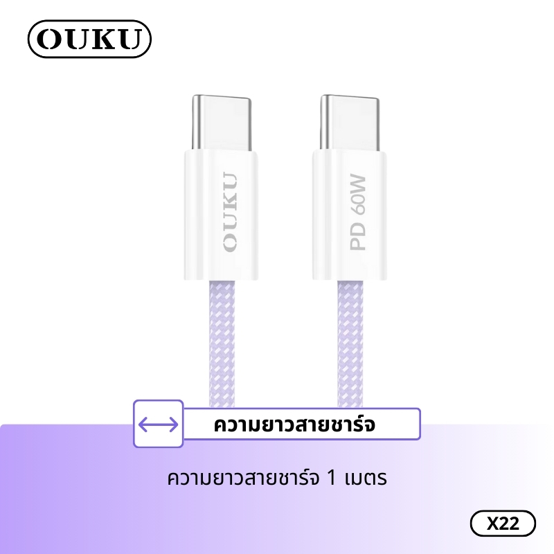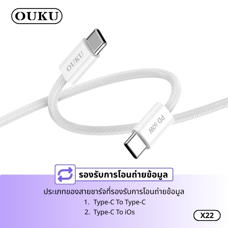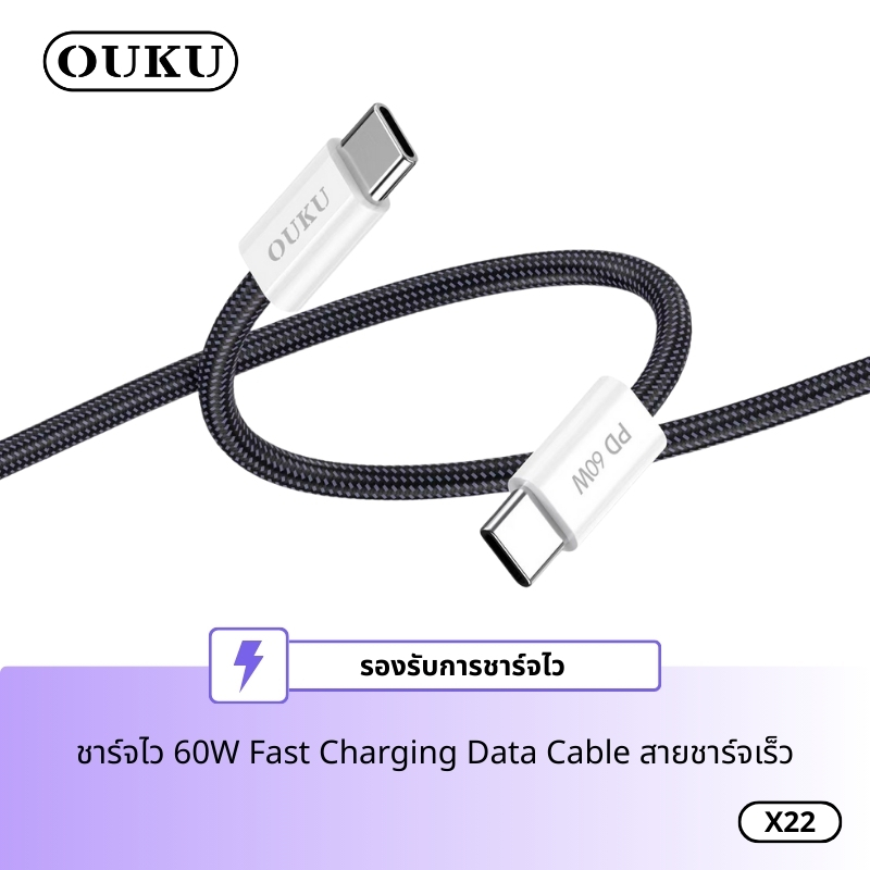 สายชาร์จ OUKU X22 สายชาร์จเร็ว 60W Data Cable สำหรับ Type-C to Type-C ชาร์จเร็ว Fast Charging