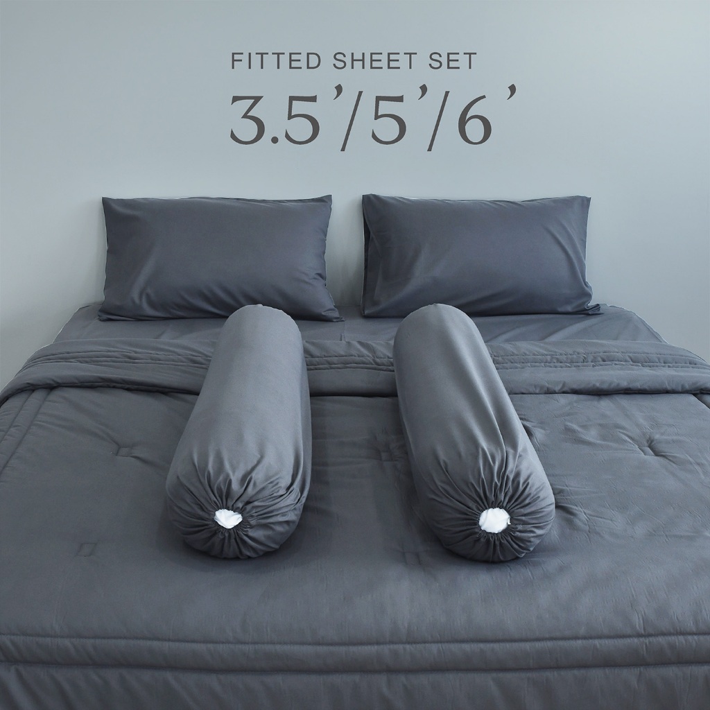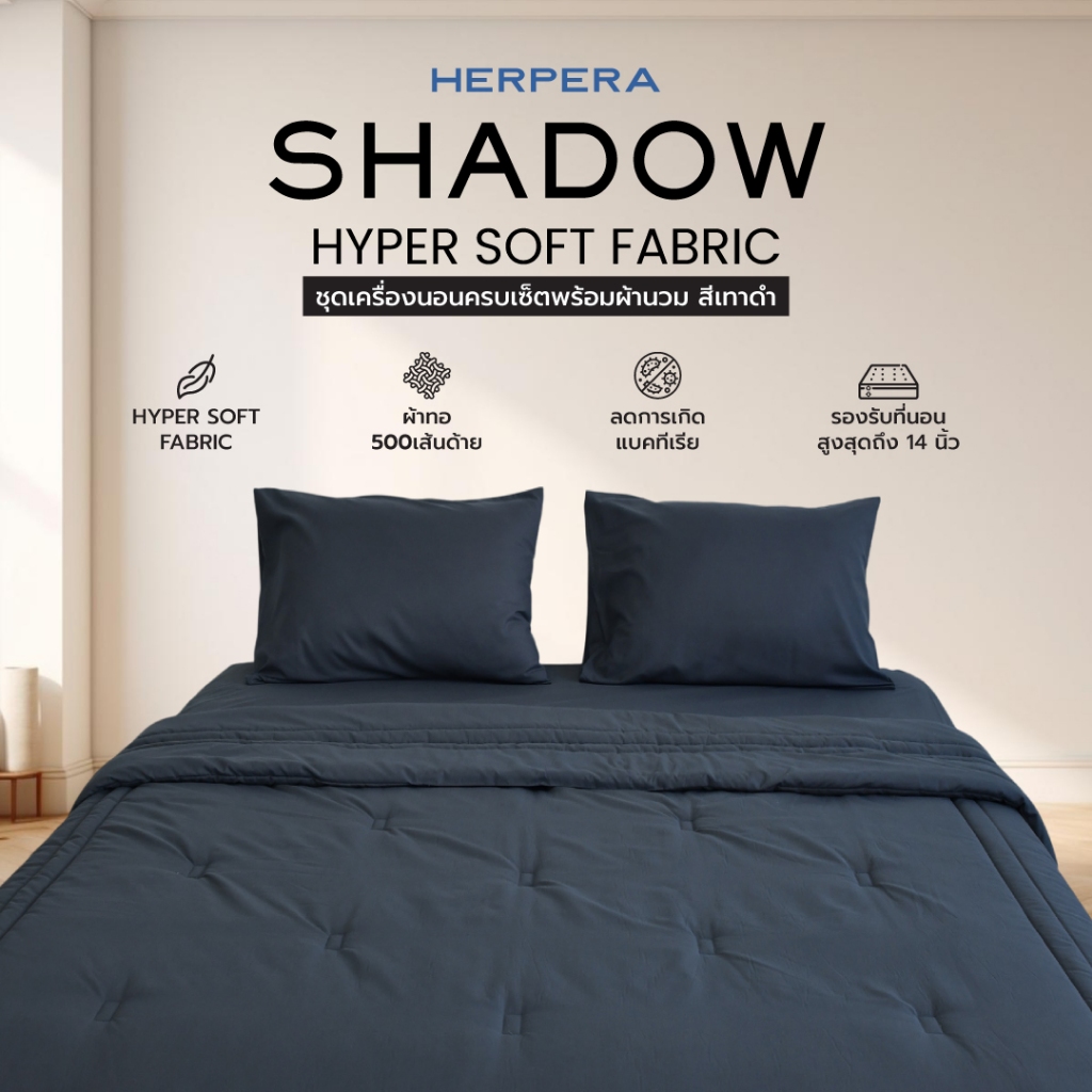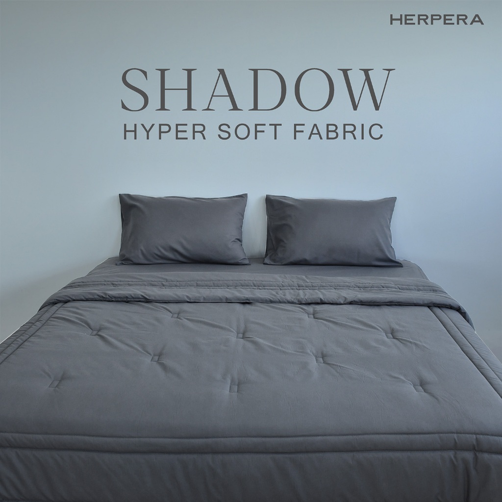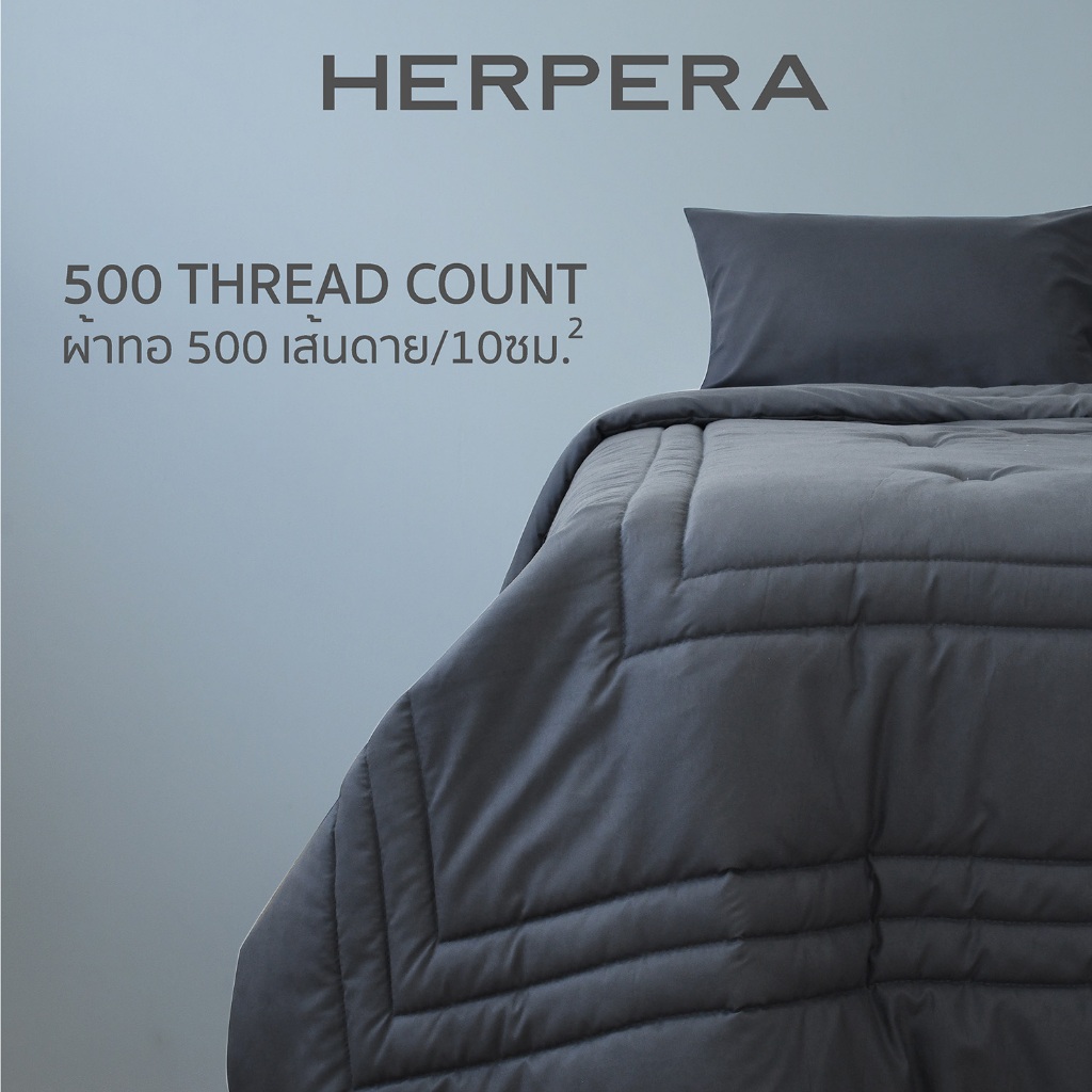 HERPERA ผ้าปูที่นอน ชุดเครื่องนอน พร้อมผ้านวม สีเทาดำ ขนาด 3.5 ฟุต 5 ฟุต 6 ฟุต