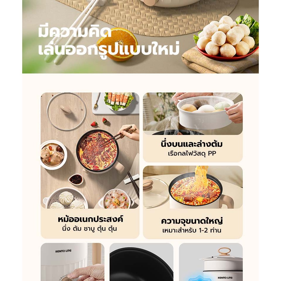 KENTO LITE หม้อไฟฟ้า หม้อต้ม หม้อไฟฟ้าอเนกประสงค์ 1.8ลิตร 600W Multipurpose Mini Pot หม้ออเนกประสงค์ หม้อไฟฟ้ามินิ 3-4คน