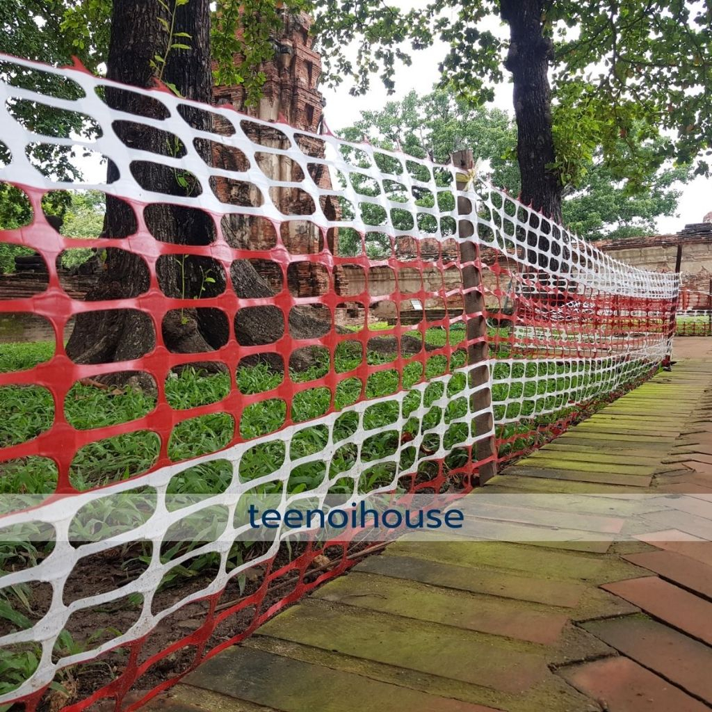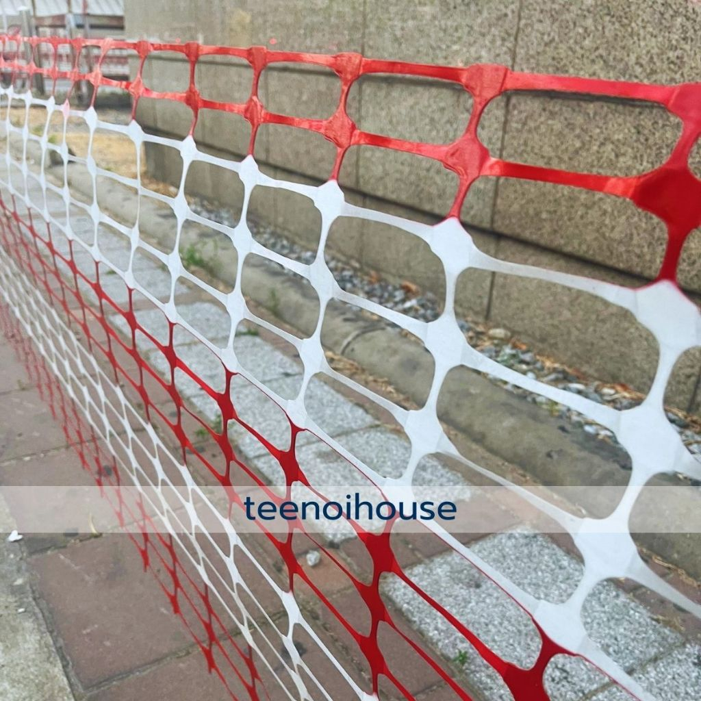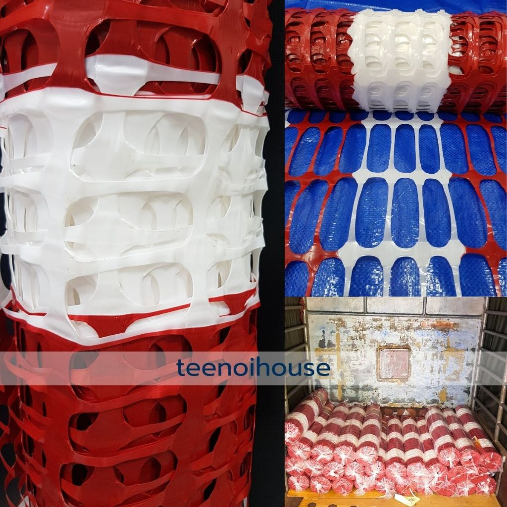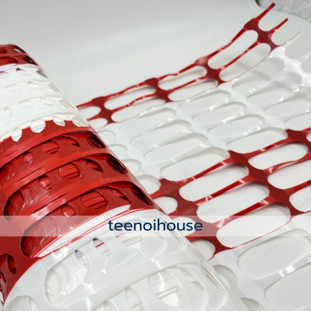 ตาข่ายพลาสติกกั้นพื้นที่ สีขาว - แดง รุ่น 6kg. กว้าง 1 ม. ยาว 50 ม. กั้นบริเวณก่อสร้าง