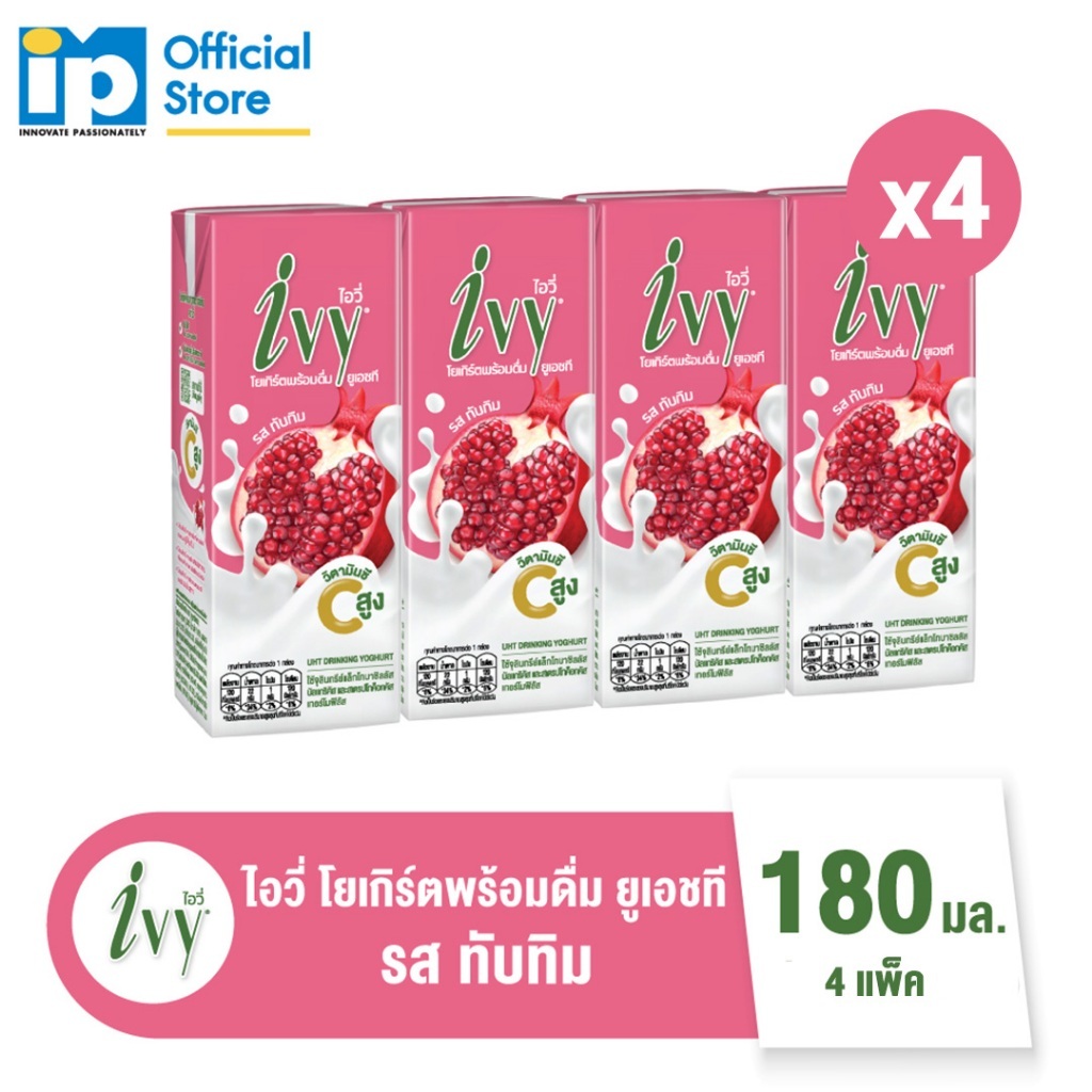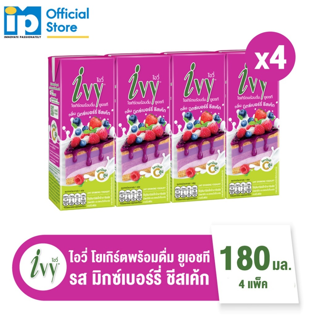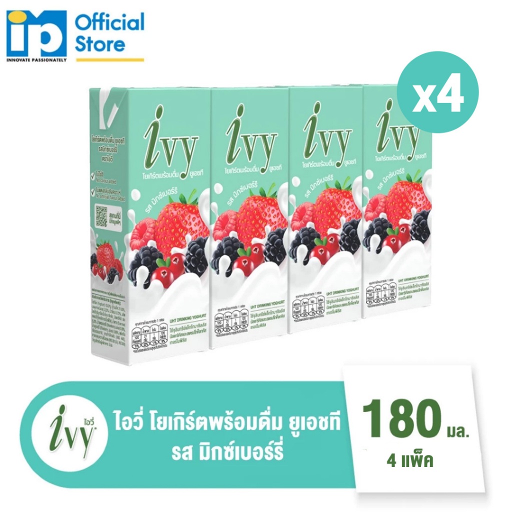 ไอวี่ โยเกิร์ตพร้อมดื่ม ยูเอชที 180 มล. จำนวน 4 แพ็ค (16 กล่อง)ตัวเลือก 5 รส