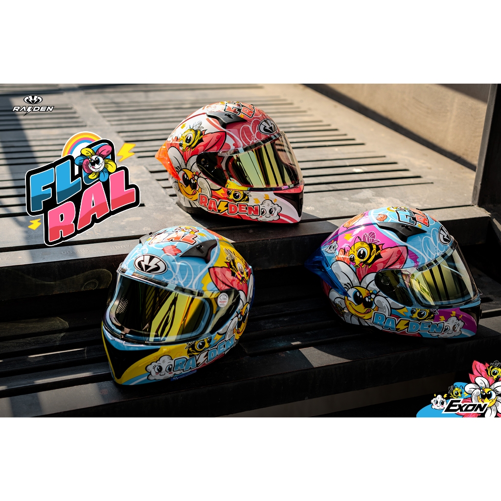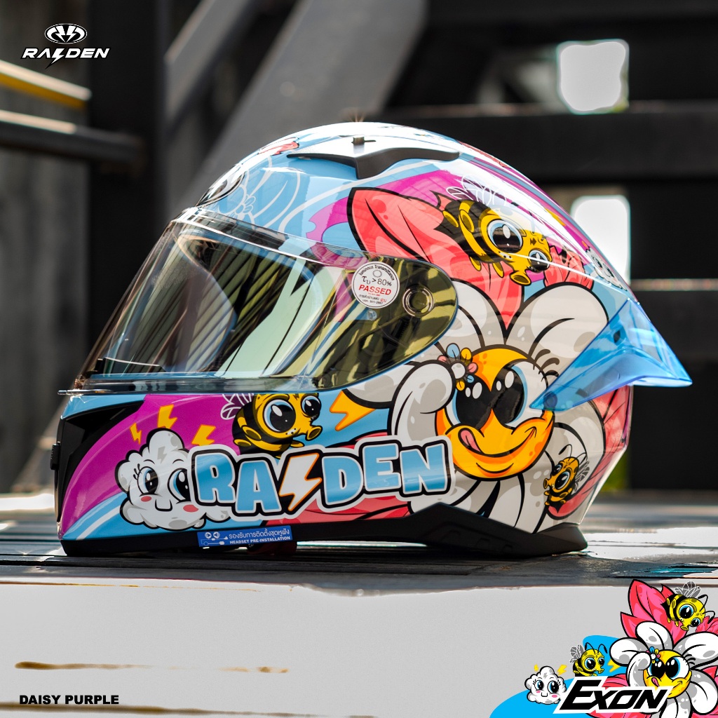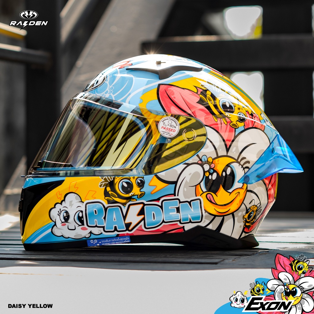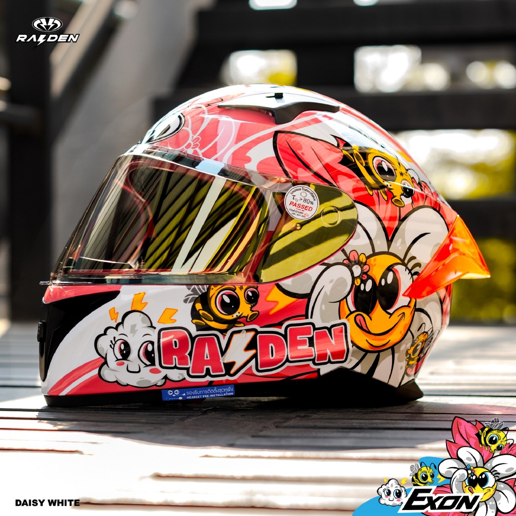 RAIDEN หมวกกันน็อค รุ่น EXON ลาย DAISY หมวกกันน็อก เต็มใบ แถมชิวดำ ดอกเดซี่ เลือกขนาดได้ M-XL