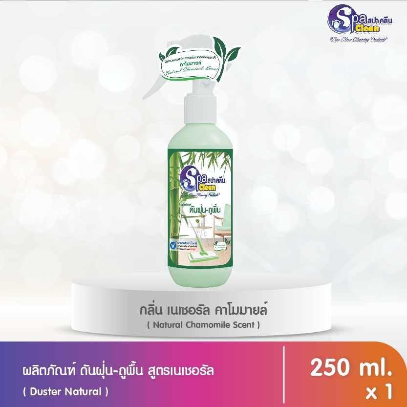น้ำยาดันฝุ่น Spa Clean สูตรเนเชอรัลตัวนี้ช่วยให้งานบ้านง่ายขึ้นแบบพรีเมียมเลยครับ เพียงแค่ฉีดลงบนผ้าม็อบแล้วถู ฝุ่นจะถูกเก็บได้ดีเยี่ยมโดยไม่ฟุ้งกระจาย เทคโนโลยีน้ำหอมจากอังกฤษให้กลิ่นลาเวนเดอร์ที่หอมสดชื่นเป็นธรรมชาติมาก ช่วยให้พื้นเงางามเหมือนใหม่โดยไม่ทิ้งคราบเหนียวพรีเมียมราคาประหยัดที่สุดครับ