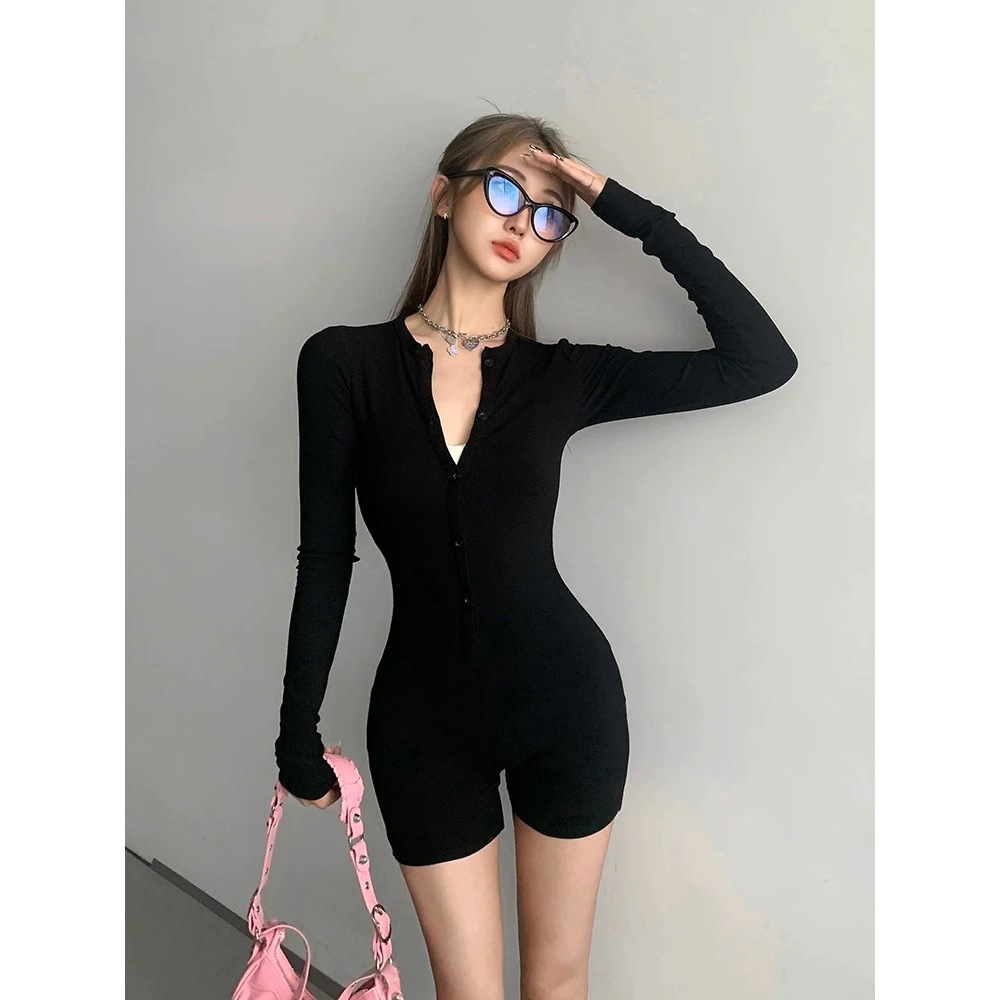 บอดี้สูท ชุดโยคะ ผู้หญิง แขนยาว กระดุมหน้าจริง เนื้อผ้าร่องอย่างดี กระชับยืดหยุ่น ดีไซน์สวยงาม #1206