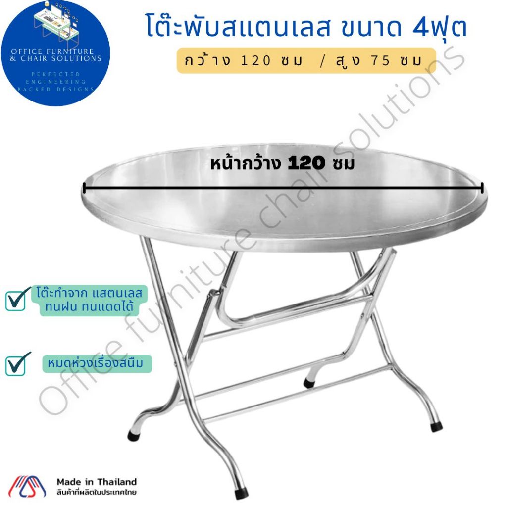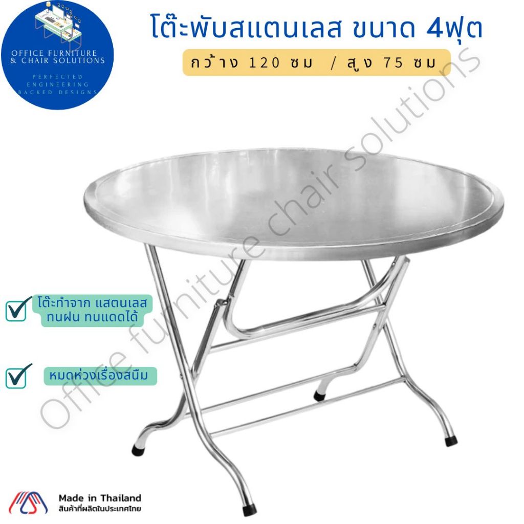 โต๊ะพับสแตนเลส ขนาด 4ฟุต โต๊ะกลมสแตนเลส โต๊ะพับสแตนเลสแท้พร้อมใช้งาน โต๊ะจัดงาน โต๊ะจีน ไม่ต้องประกอบ พับเก็บได้