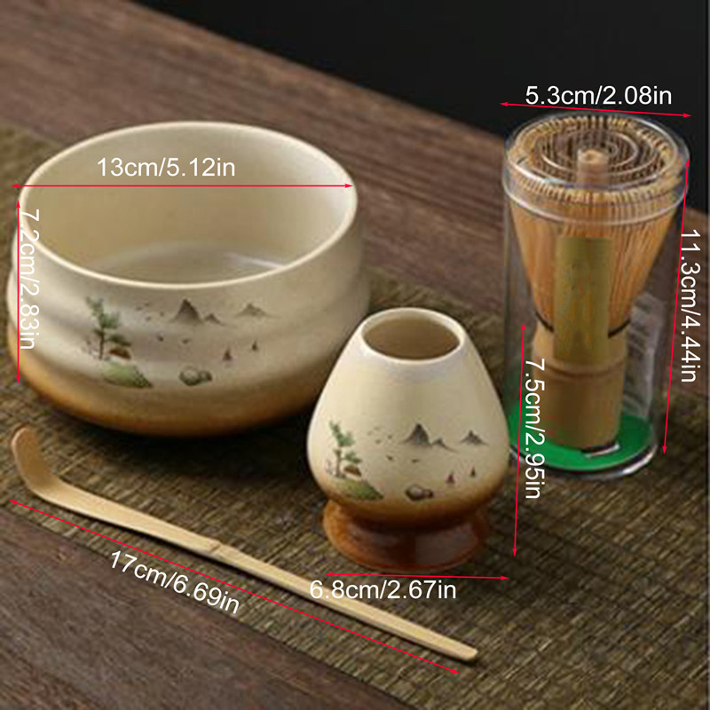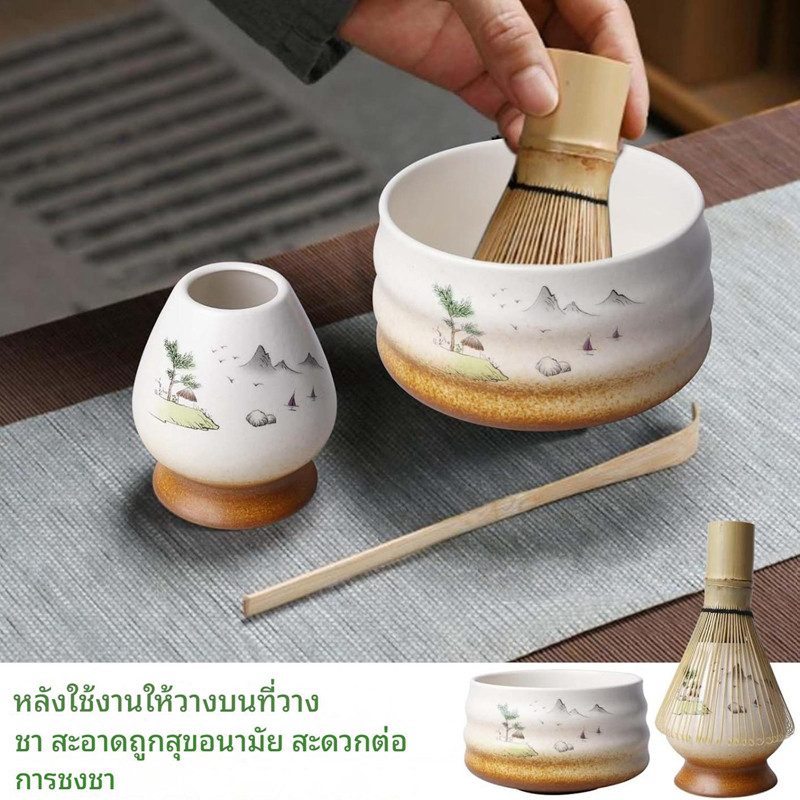ชามมัทฉะหิน ชุด 4/5 ชิ้น ถ้วยชงชาเขียวมัทฉะ พร้อมปากถ้วยมัทฉะญี่ปุ่น แปรงไม้ไผ่ กาน้ำชา ชุดน้ําชาญี่ปุ่น ชุดของขวัญมัทฉะแบบดั้งเดิม
