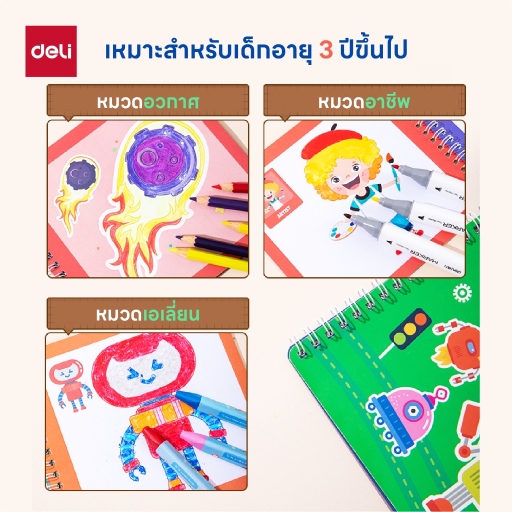 Deli สมุดระบายสี มีหลายลายให้เลือก ภาพสวยคมชัด Drawing Book จำหน่าย 1 เล่ม