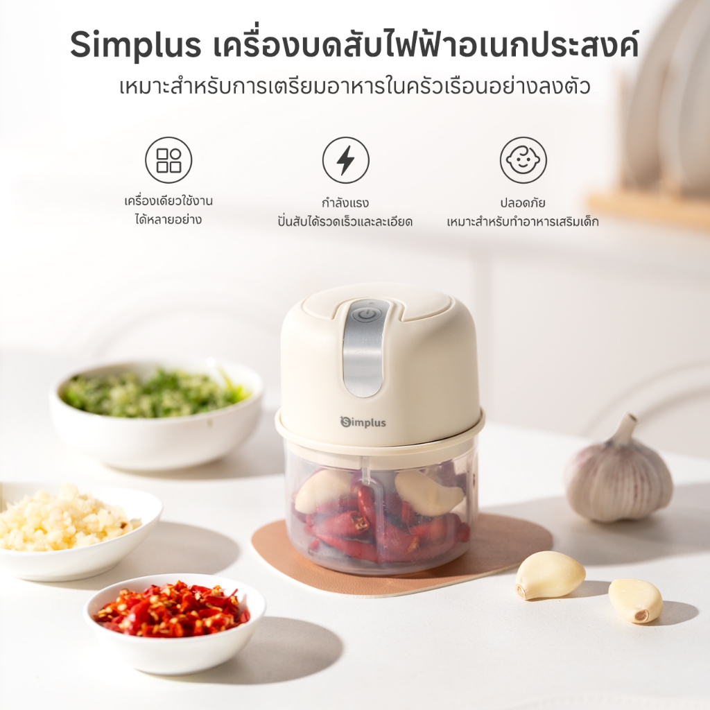 Simplus×PP Krit เครื่องบดเนื้อพกพาขนาดเล็ก เครื่องปั่นไฟฟ้าใช้ในบ้าน สำหรับบดกระเทียม สับผัก เครื่องบดพริกไทย เครื่องทำอาหารอเนกประสงค์ วัสดุเกรดอาหาร เหมาะสำหรับทำอาหารเสริมให้เด็ก DDJR007