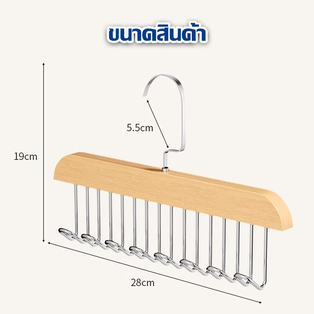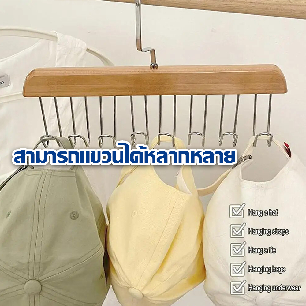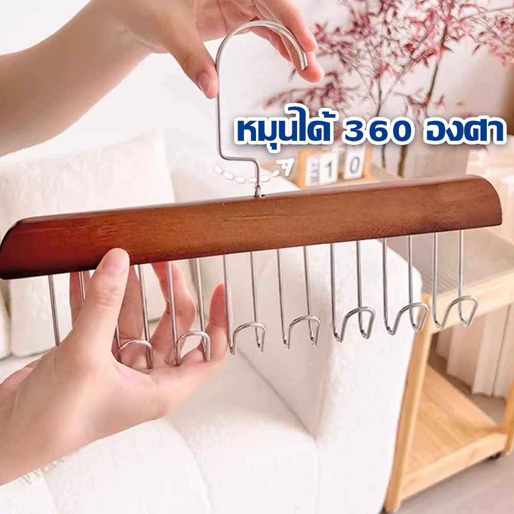 HOPTECH ไม้แขวนเสื้อ 8 ตะขอ กันลื่น ประหยัดพื้นที่ตู้เสื้อผ้า ที่เก็บเสื้อผ้า อเนกประสงค์