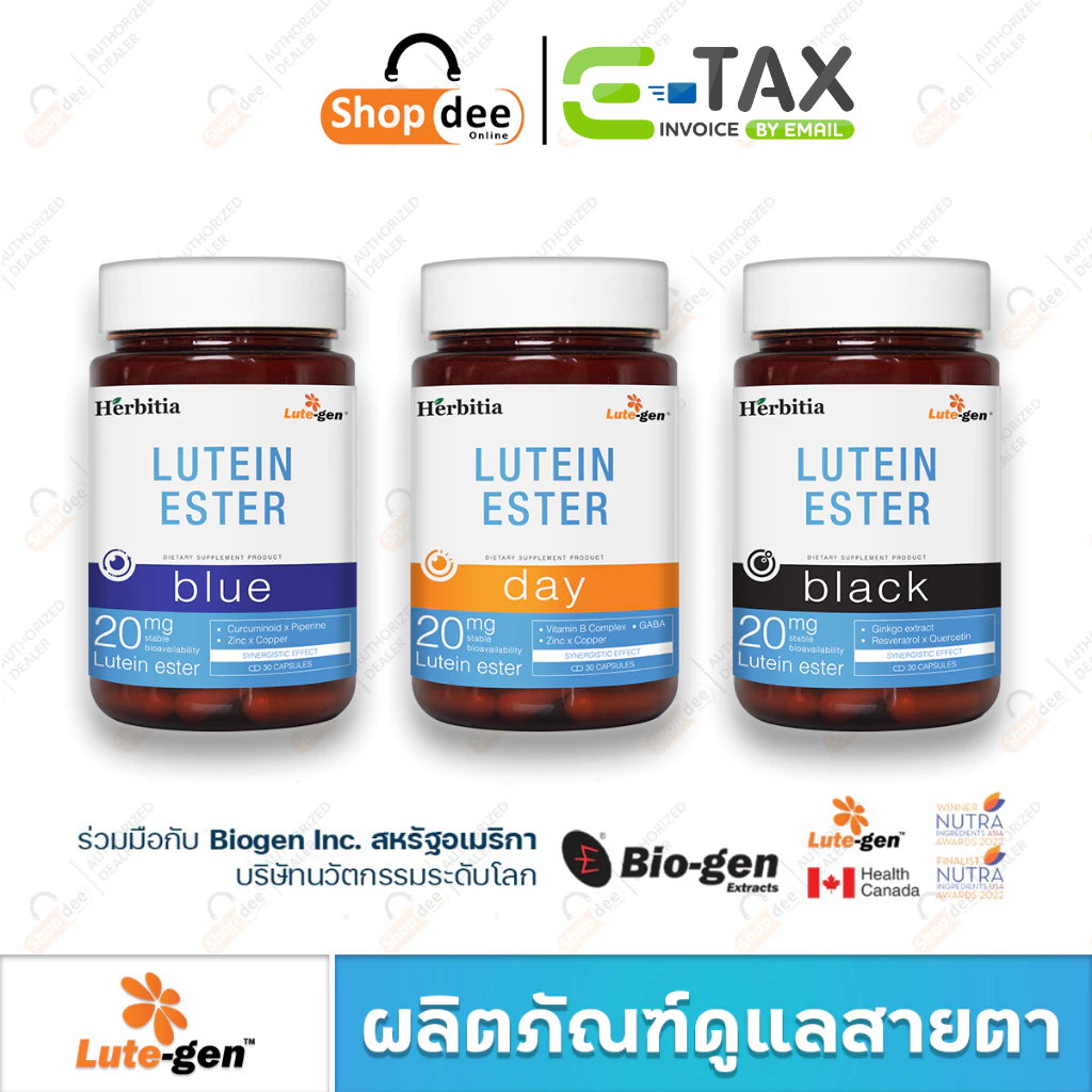 Herbitia Lutein Ester Day Blue Black เฮอร์บิเทีย ลูทีน เอสเทอร์ วิตามินบำรุงสายตา บำรุงดวงตา Lutegen