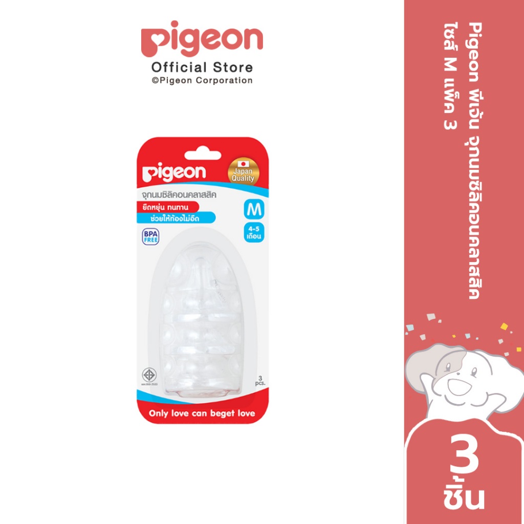 Pigeon พีเจ้น จุกนมซิลิคอนคลาสสิคไซส์ S/M/L แพค 3