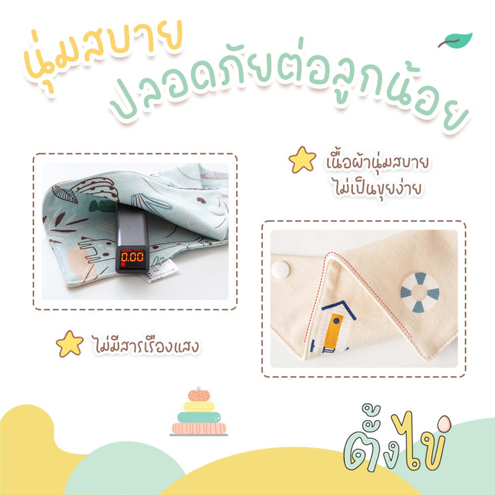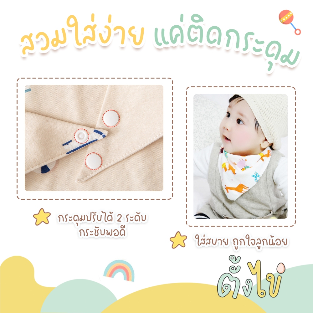 [ตั้งไข่] ผ้าซับน้ำลาย แบบสามเหลี่ยม ผ้าซับน้ำลายมีกระดุม ผ้าเช็ดน้ำลาย