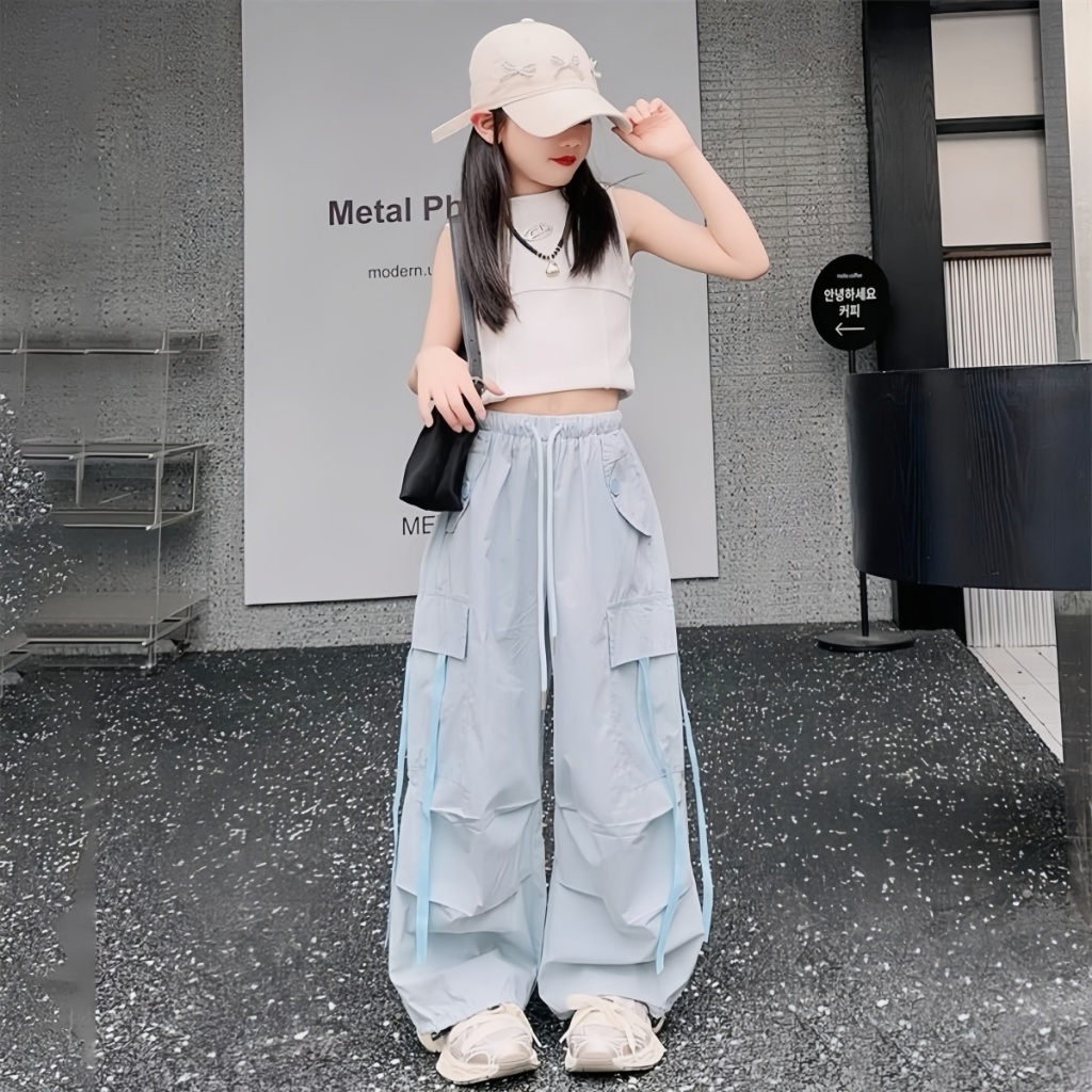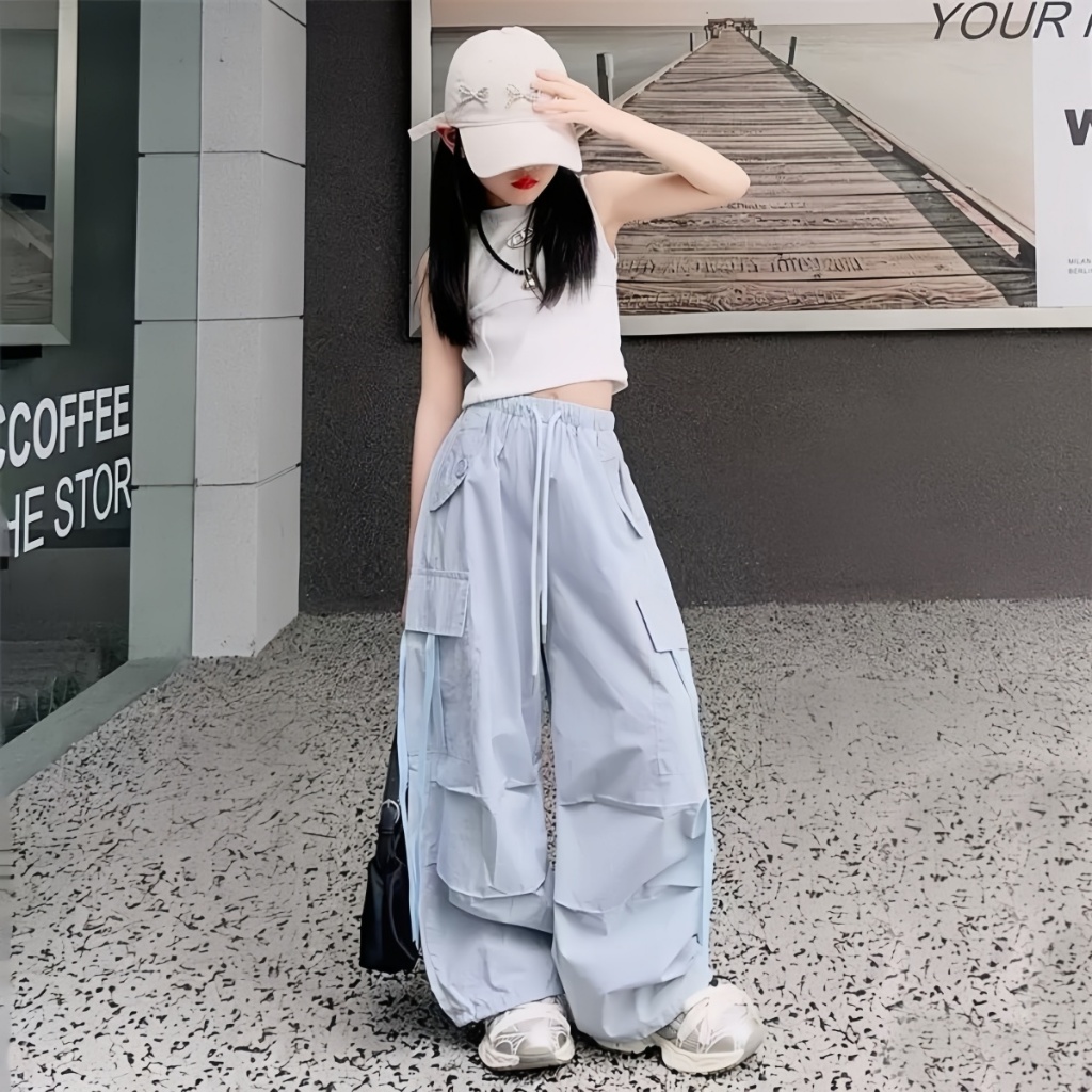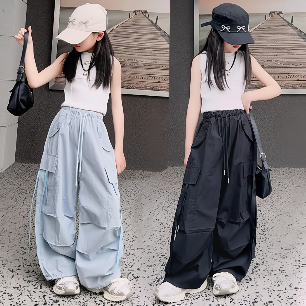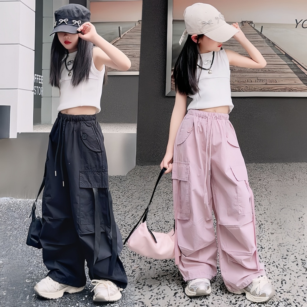 honeywears⚡️พร้อมส่ง⚡️กางเกงคาร์โก้เด็กแฟชั่น ขายาวกว้าง สไตล์เกาหลี ฮิปฮอปลำลอง ทรงหลวม ฤดูร้อน ไซส์ 120-160