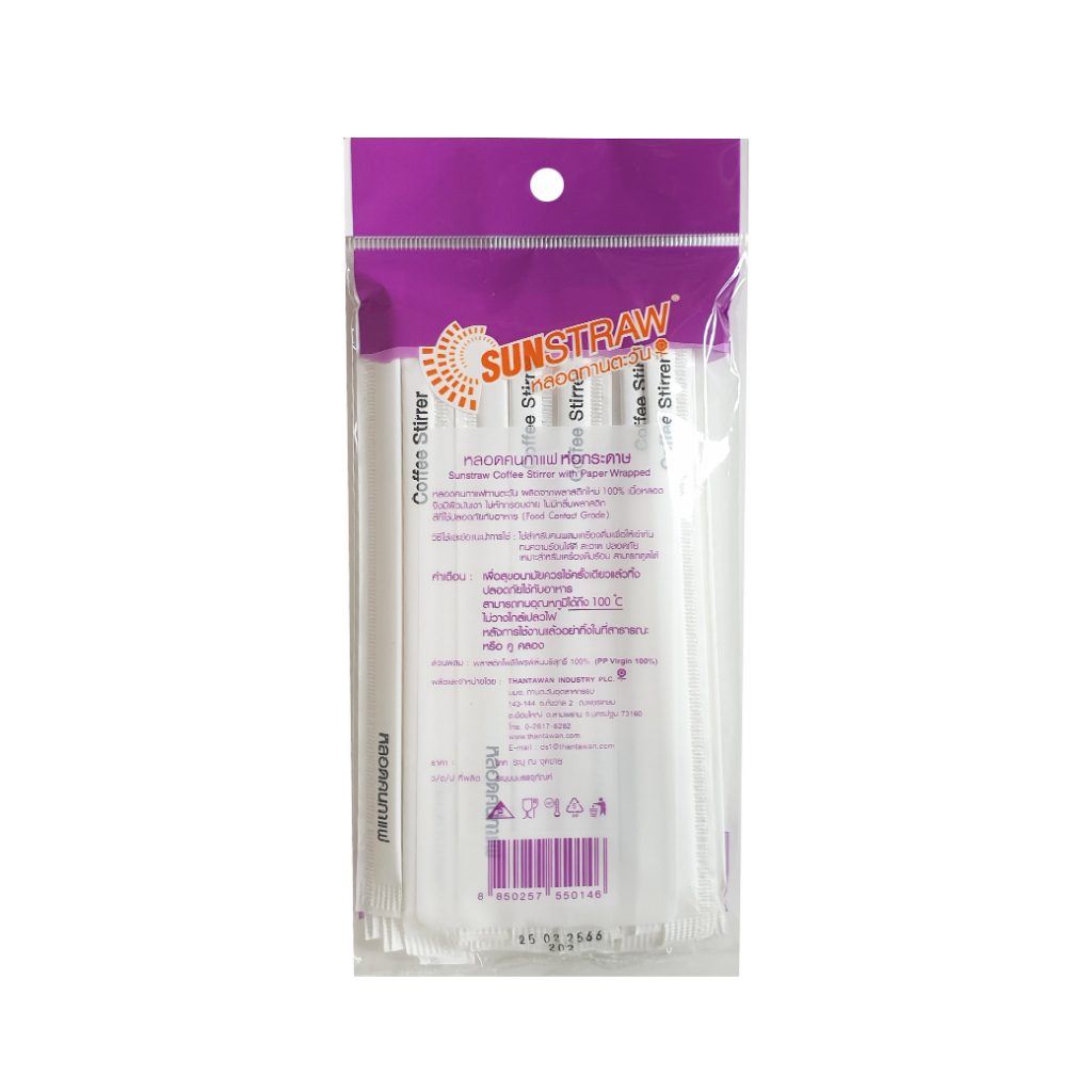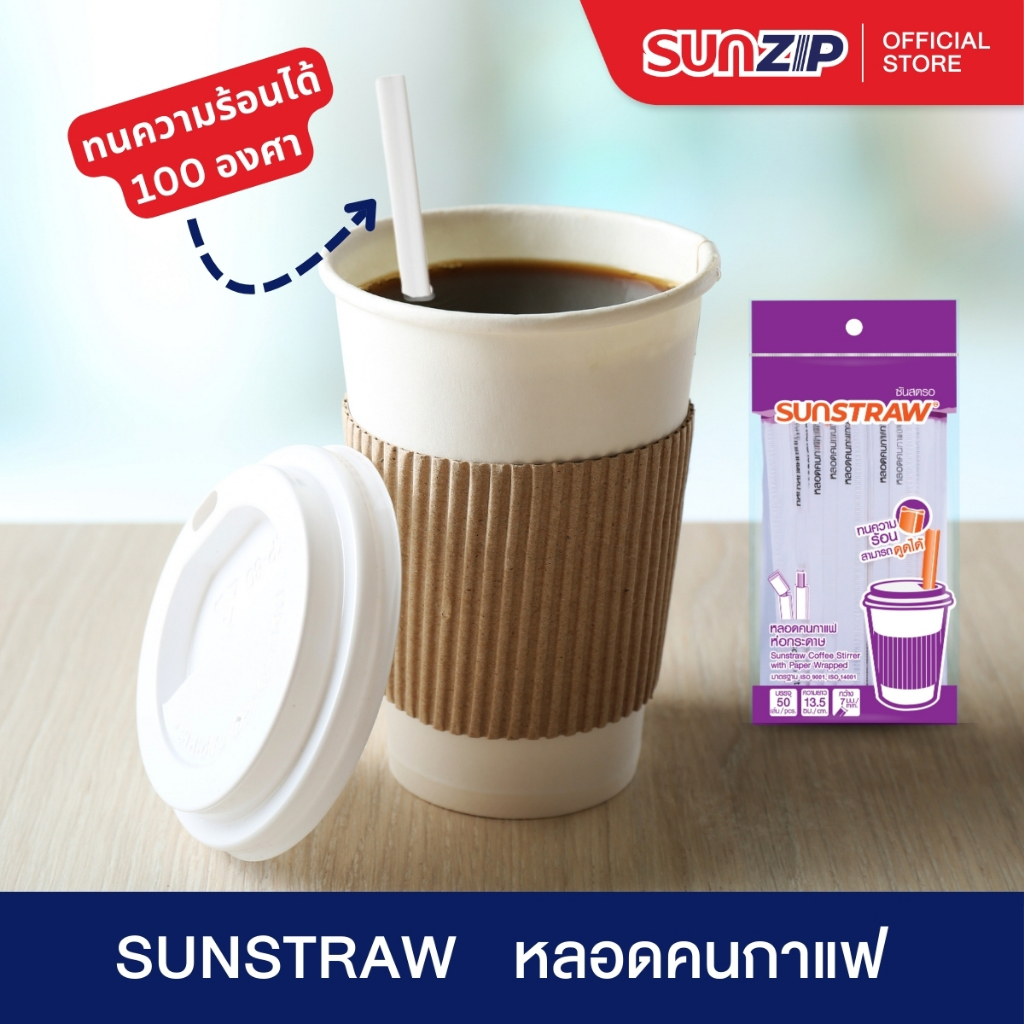 SUNZIP | หลอดกาแฟร้อนสีขาว(3แพ็ค) /ห่อกระดาษ เนื้อหลอดมันวาว ไม่มีกลิ่นพลาสติก ใช้กับเครื่องดื่มร้อน ทนอุณหภูมิ 100 องศา