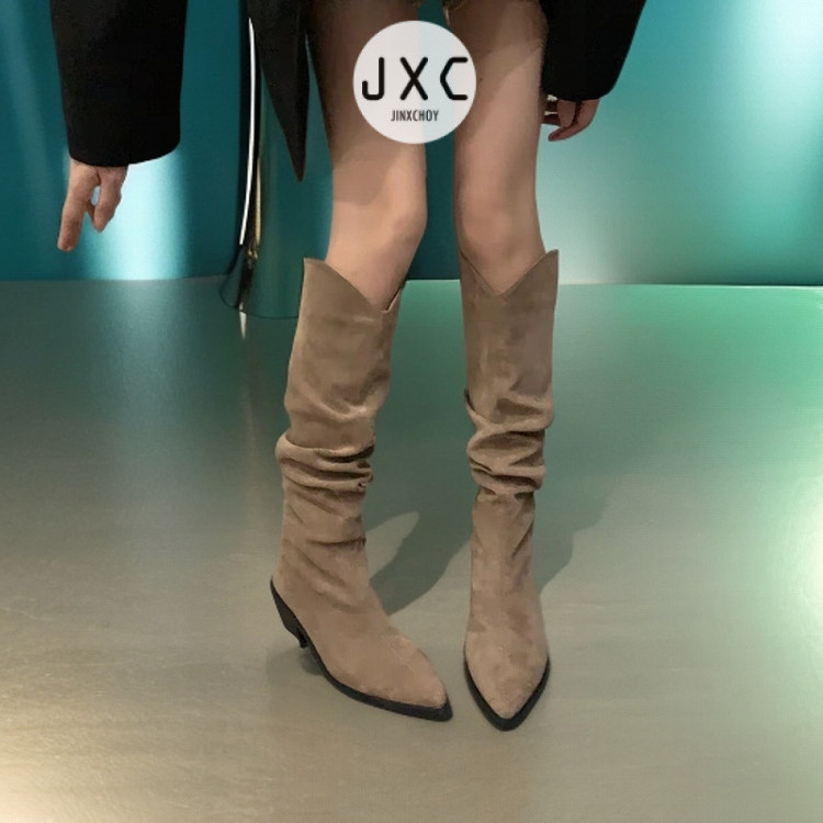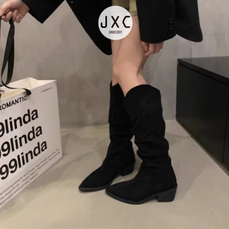 รองเท้าบูทแฟชั่นทรงสูงหนังนิ่มสำหรับฤดูหนาว PU เกาหลียืดหยุ่นระบายอากาศได้แขนเสื้อให้ความอบอุ่นและกันลื่นวัยรุ่นเฉพาะกลุ่มรองเท้าอัศวินทรงสูงราคาขายส่งโรงงานหญิง