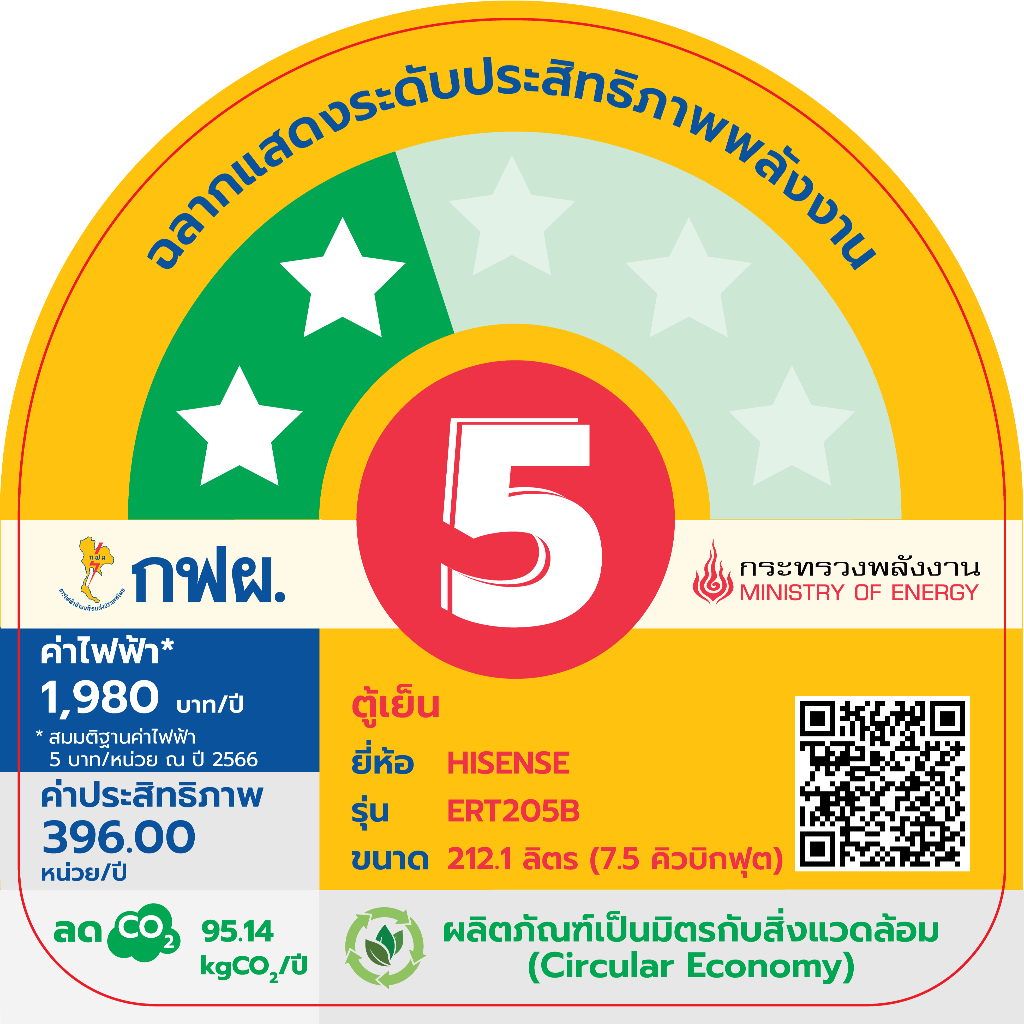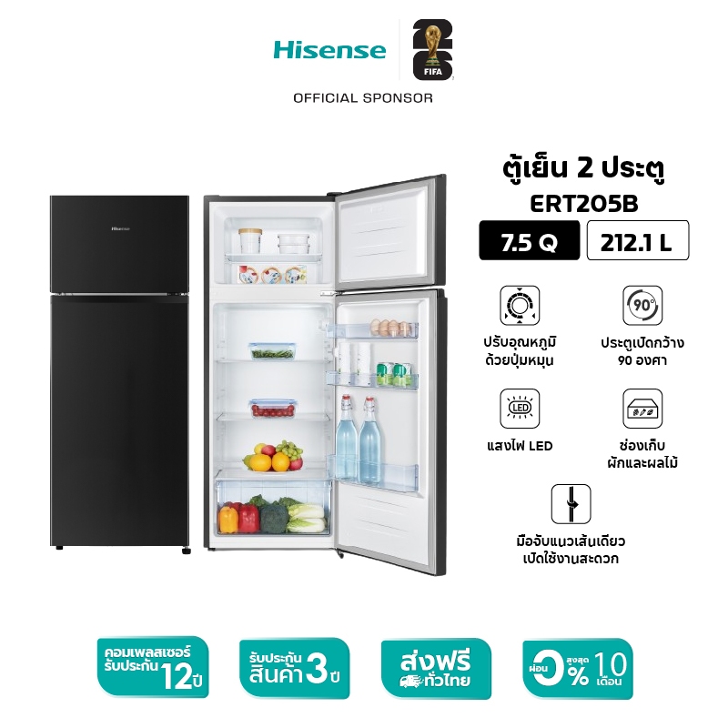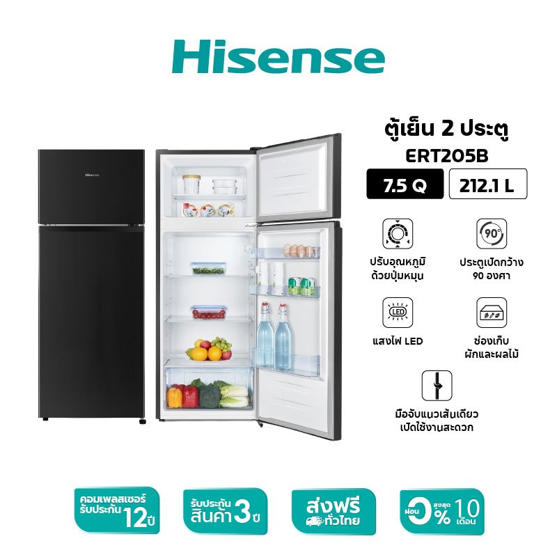 [Presale พร้อมส่ง 8 พค] Hisense ตู้เย็น 2 ประตู 7.5Q / 212.1 ลิตร รุ่น ERT205B