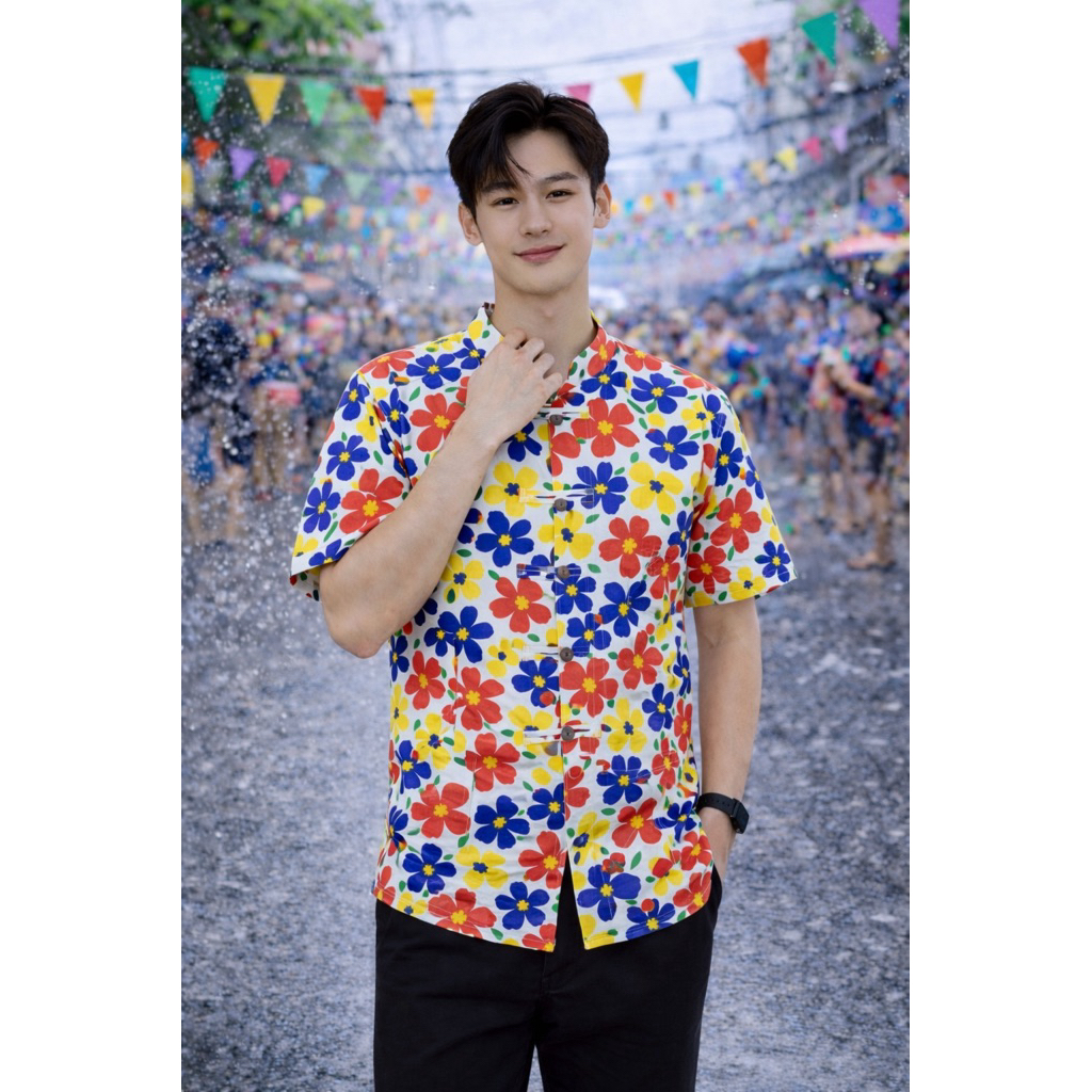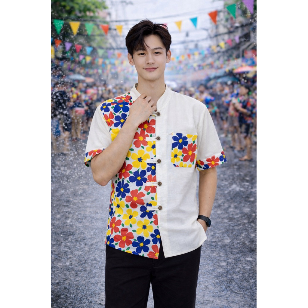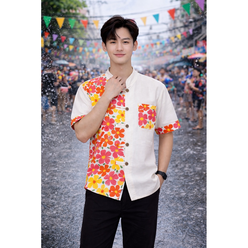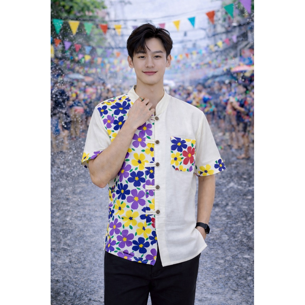 เสื้อลายดอกสงกรานต์ผู้ชาย รวม6แบบ (พร้อมส่งจากเชียงราย)