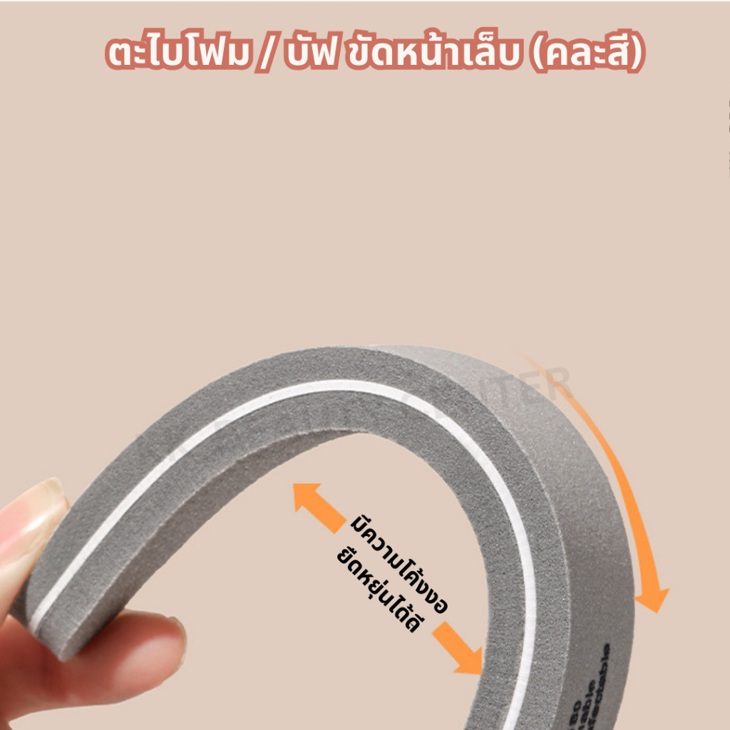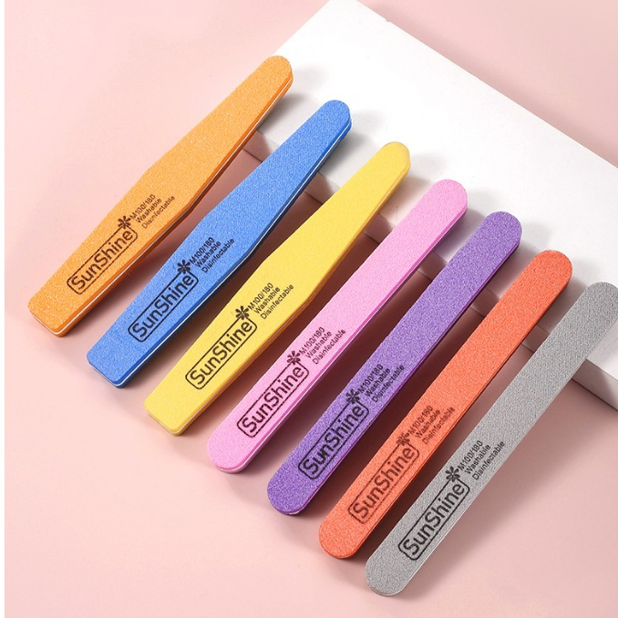 (สินค้าส่งจากไทย) SunShie 100/180 ตะไบโฟม บัฟ ฟองน้ำขัดหน้าเล็บ ที่ขัดเล็บ (แบบเดี่ยว 1ชิ้น) คละสี
