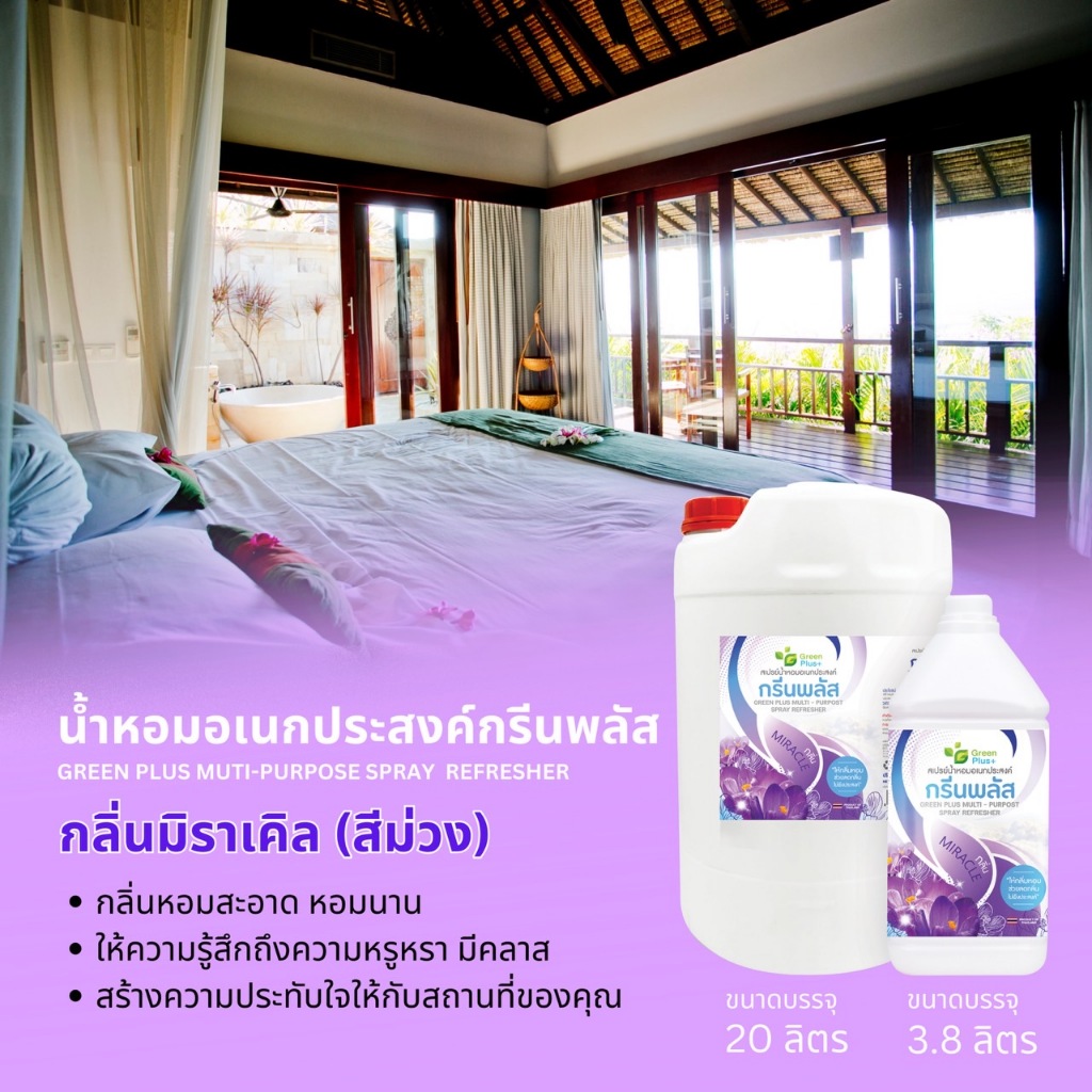 กรีนพลัส น้ำหอมปรับอากาศ สูตรน้ำ (สีม่วง-กลิ่นมิราเคิล) ขนาดแกลลอน 3,800 มล.