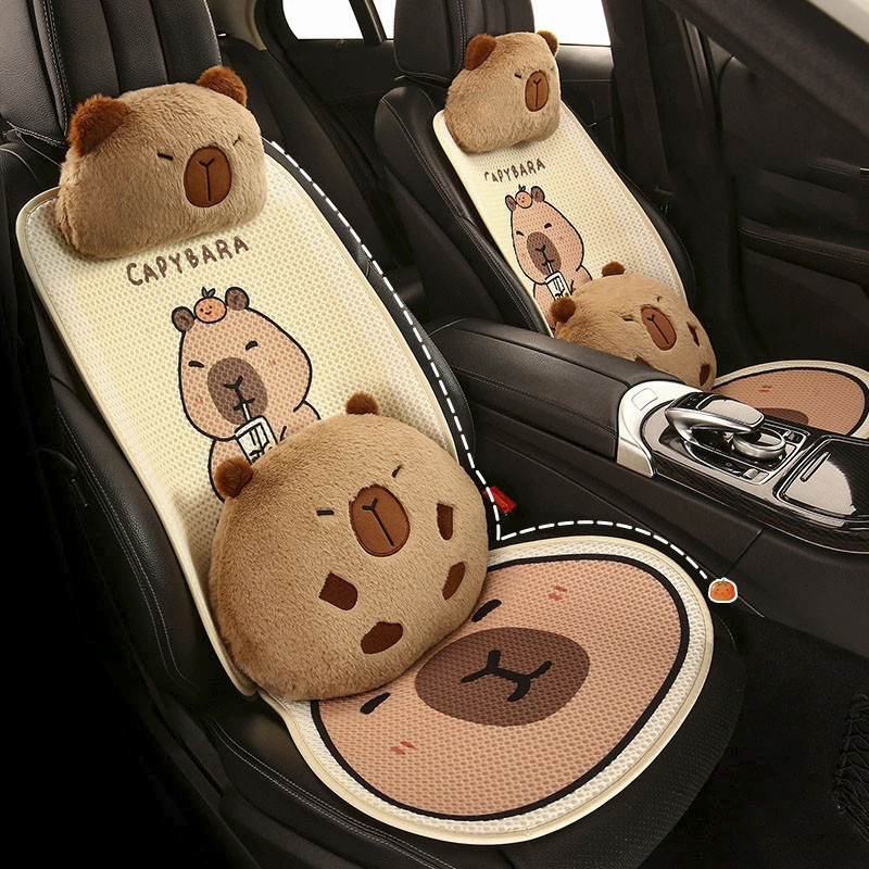 COD เบาะรองนั่งรถยนต์ Capybara ที่หุ้มเบาะรถยนต์ หมอนรองคอในรถ รูปแบบการ์ตูนน่ารัก