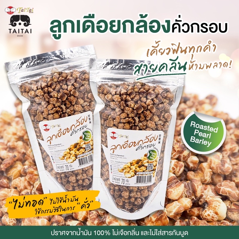 เจ ลูกเดือยกล้องคั่วกรอบ 70/170 กรัม (ตราไทไทแบรนด์) Roasted Brown Pearl Barley ลูกเดือยกล้อง พันธ์ข้าวเหนียวไม่มีน้ำมัน