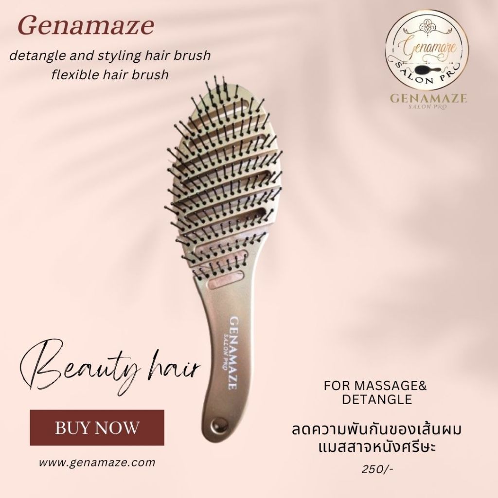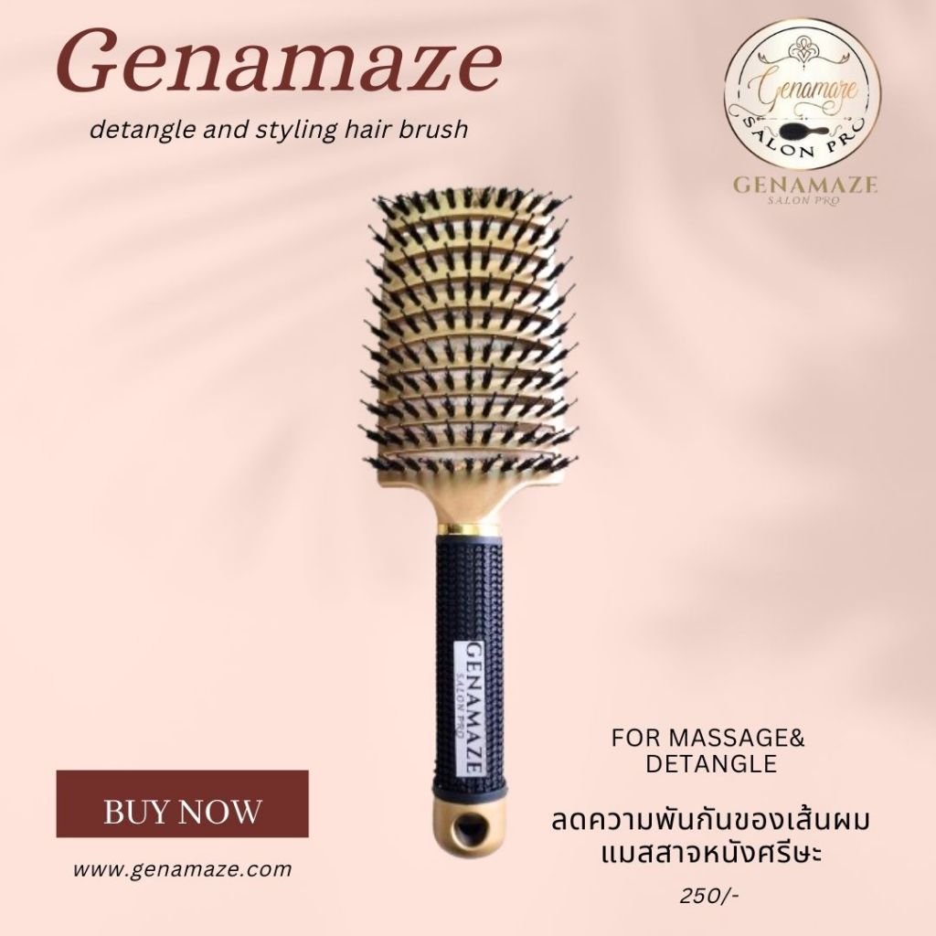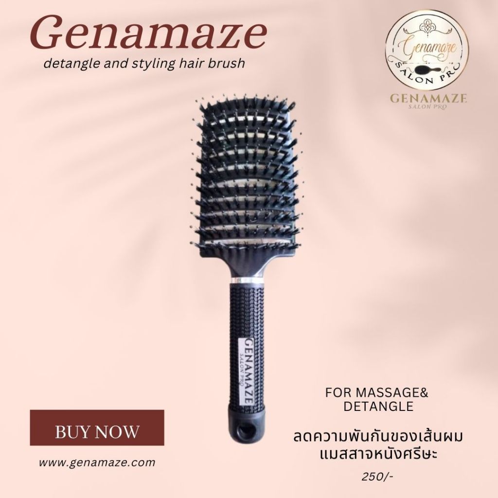 Genamaze Vent Brush L หน้าใหญ่ พร้อมช่องระบายลม หวีตัวนี้เหมาะสำหรับสางผมหลังการสระผมตอนเปียก หรือใช้กับตอนไดร์ได้