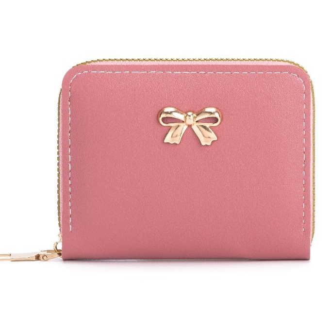 กระเป๋าสตางค์สีพลาสเทล ใบสั้นโบว์ น่ารัก ใส่แบงค์ ใส่บัตร ใส่เหรียญได้ (GC-088)