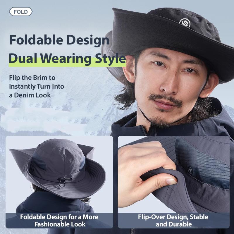 SOLOEVER Hats หมวกบังแดดปีกกว้าง หมวกบังแดด หมวกเดินป่า 360 องศา UPF50+ พับได้ สําหรับเดินป่า ตกปลา เล่นเซิร์ฟ