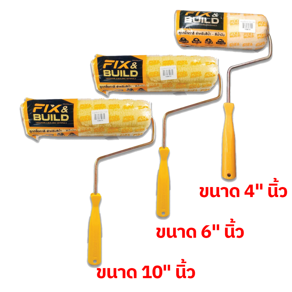 ลูกกลิ้งทาสี สีน้ำ สีน้ำมัน ขนาด 4 6 10 นิ้ว FIX&BUILD ขนแปรงทอแน่น ไม่หลุดง่าย ซึบซับสีได้ดี